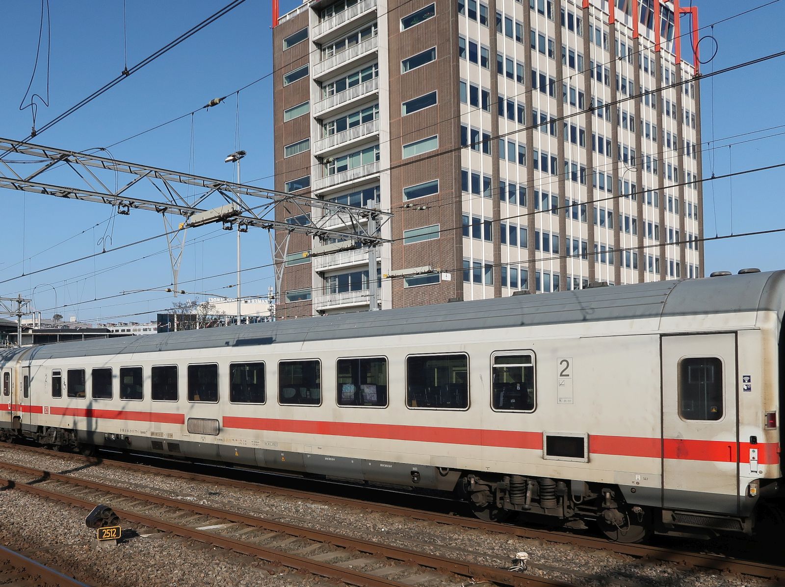 DB Bpmmz 284.5 intercityrijtuig tweede klasse met nummer D-DB 61 80 20-91 529-3 in vertraagde IC144 van Berlijn naar Amsterdam. Spoor 2 station Bad Bentheim, Duitsland 27-08-2025.