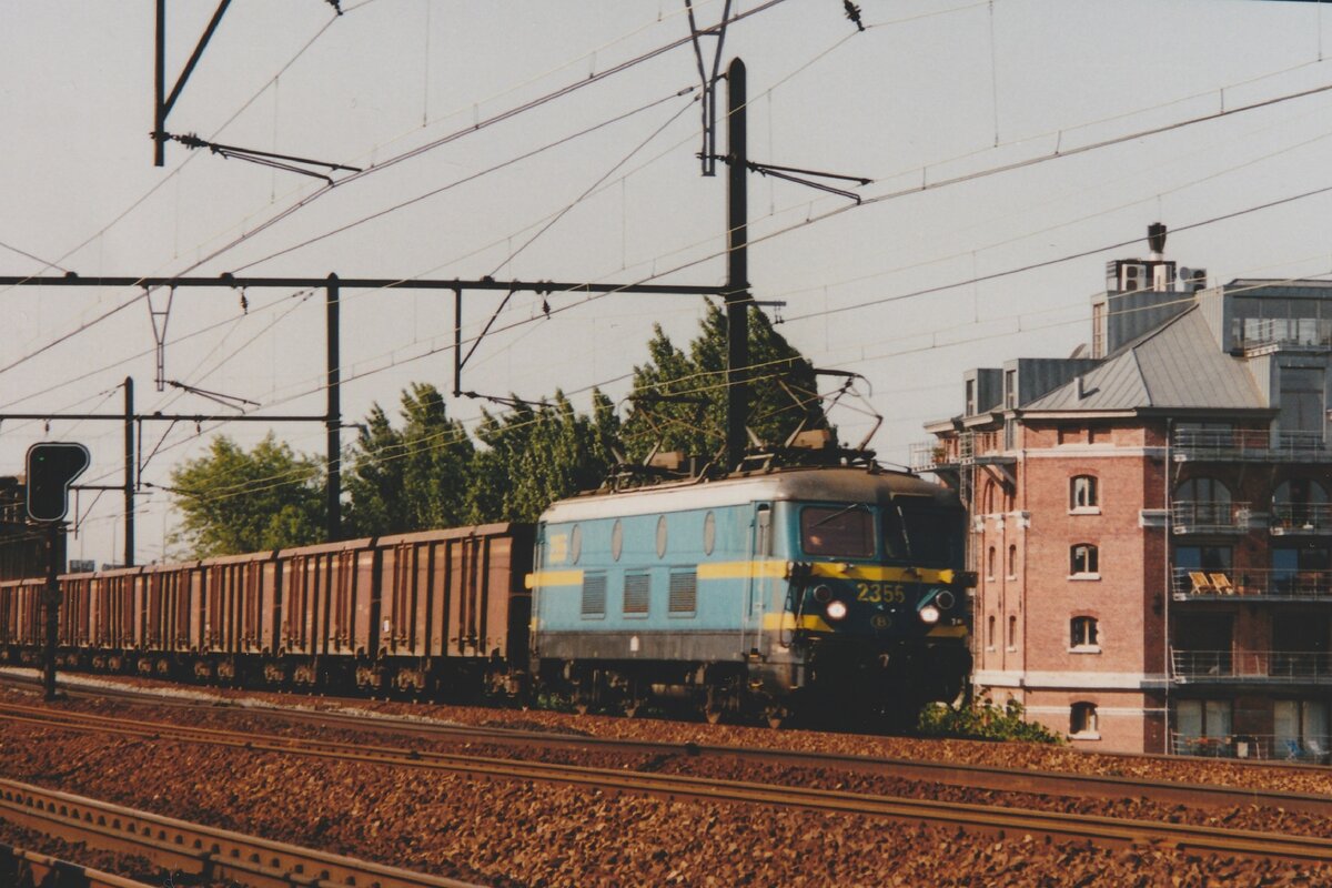 NMBS 2334 durchfahrt mit ein PKW-Ganzzug Antwerpen-Luchtbal am 10 Juni 2006.