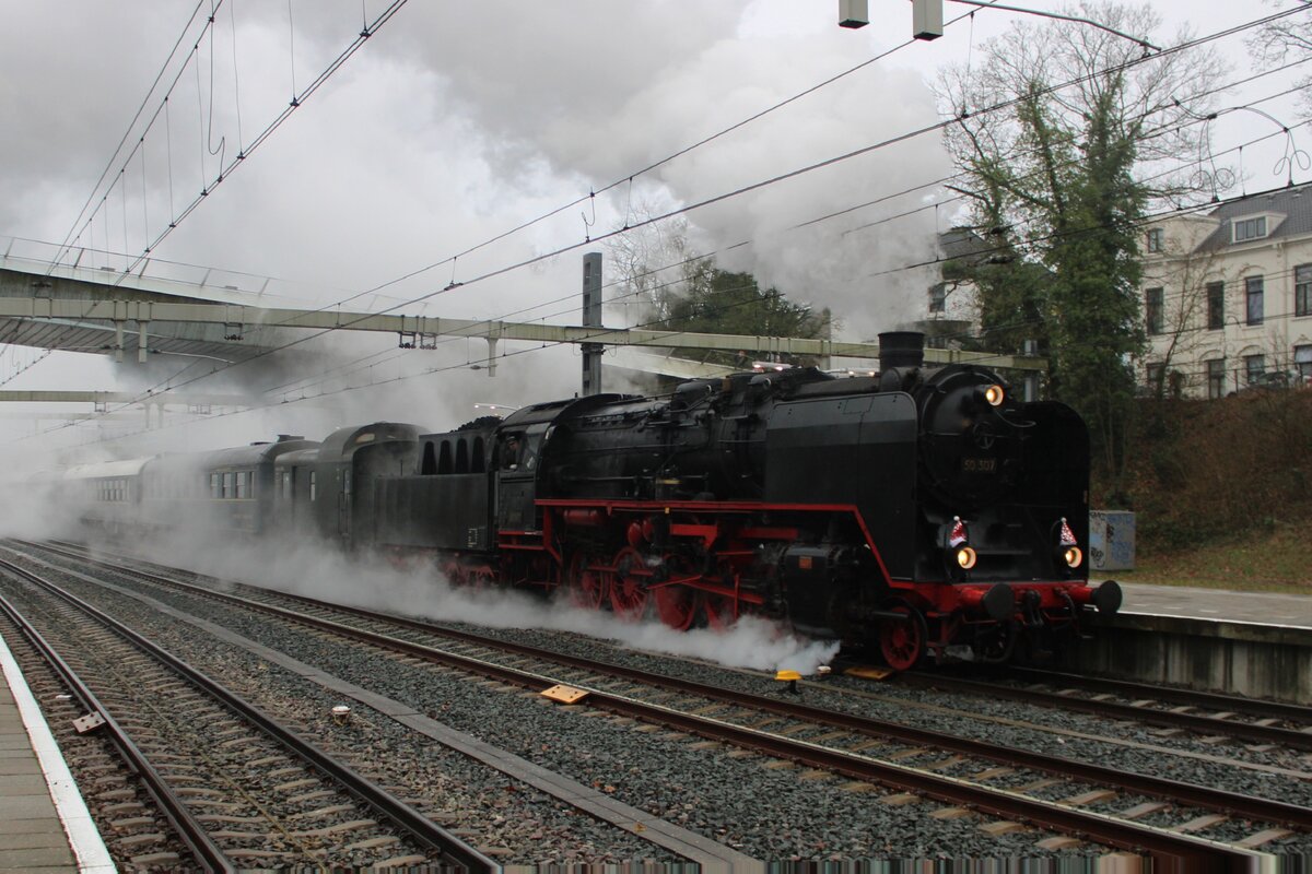 VSM 50 307 verlasst mit der Dampfpendelzug Christmas-express am 14 Dezember 2024 Arnhem Centraal auf den Weg nach Nijmegen.