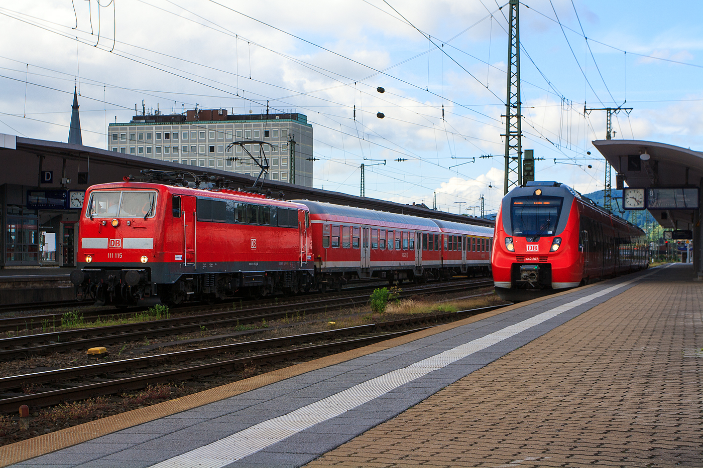 Die 111 104-6 (91 80 6111 104-6 D-DB) am 30.08.2016 mit einem Regionalzug (N-Wagen) im Hbf Heidelberg.