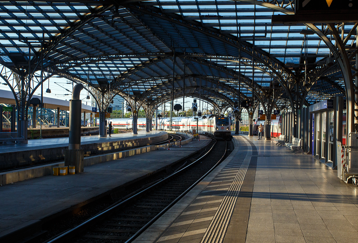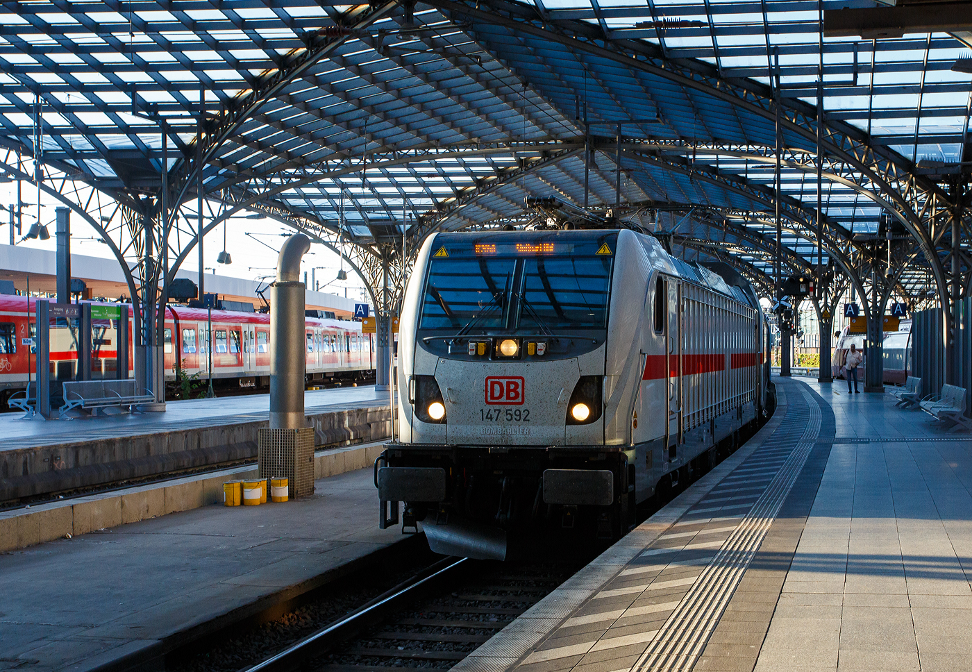 IC 2004 Konstanz – Emden bei der Ausfahrt aus Konstanz. "Steuerwagen" 110 459-0 hängt kalt am Zugschluss. Die Lok wurde bereits 1967 in Dienst gestellt, hat aber nach ihrer HU 2013 noch ein paar Tage Betrieb vor sich. März 2014.