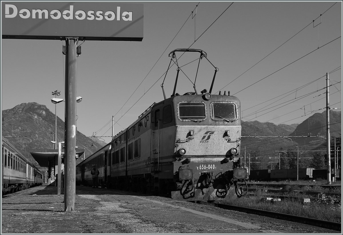Der aus Milano in Domodossola eintreffende Trenord ETR 521 "Rock" lenkt die Blicke der Dame am rechten Bildrand auf sich, wobei ich diesen Blick aus rechtlichen Gründen "verändern" musste. 31. Oktober 2024