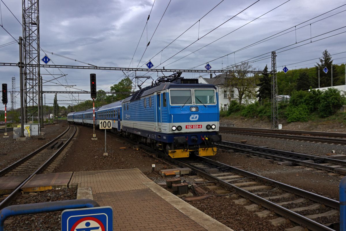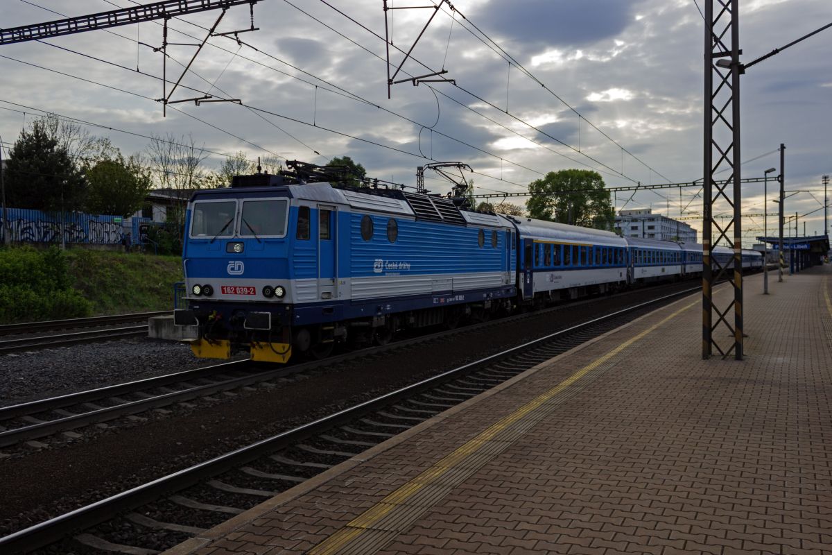 Um kurz vor 4 Uhr am frühen Morgen ist 162 117 mit dem RegioJet 1008 in Košice im Osten der Slowakei gestartet. Etwas mehr als 8 Stunden später durchfährt die Lok mit ihrer Zuggarnitur auf dem Weg zum Abstellbahnhof durch Vršovice.