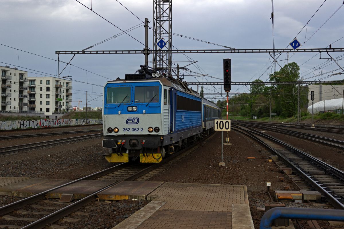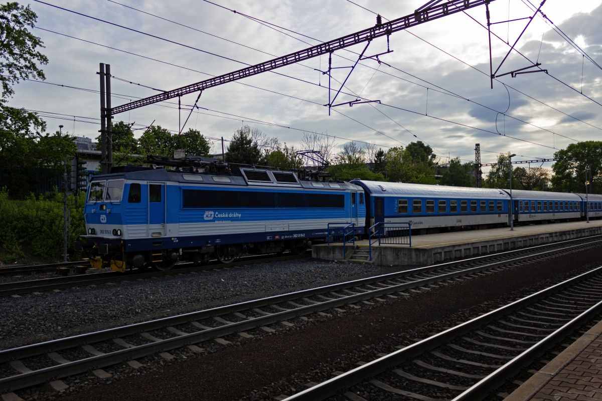 362 082 und 363 038 stehen am Abend des 29.10.2011 in Plzen. Sichtungsbild aus dem fahrenden Zug.