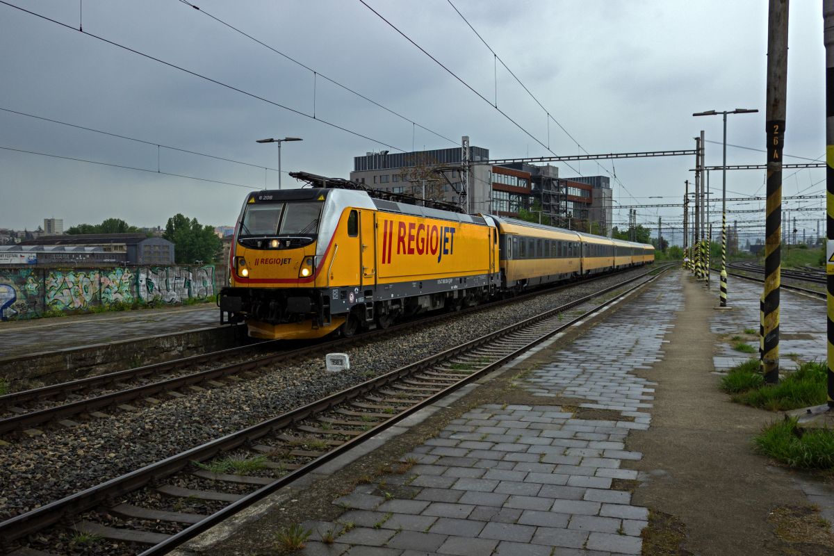 Auf der Fahrt von Prag nach Bratislava wird 388 208 mit RegioJet 1043 in Kürze in Brno hlavn´nádraží eintreffen.