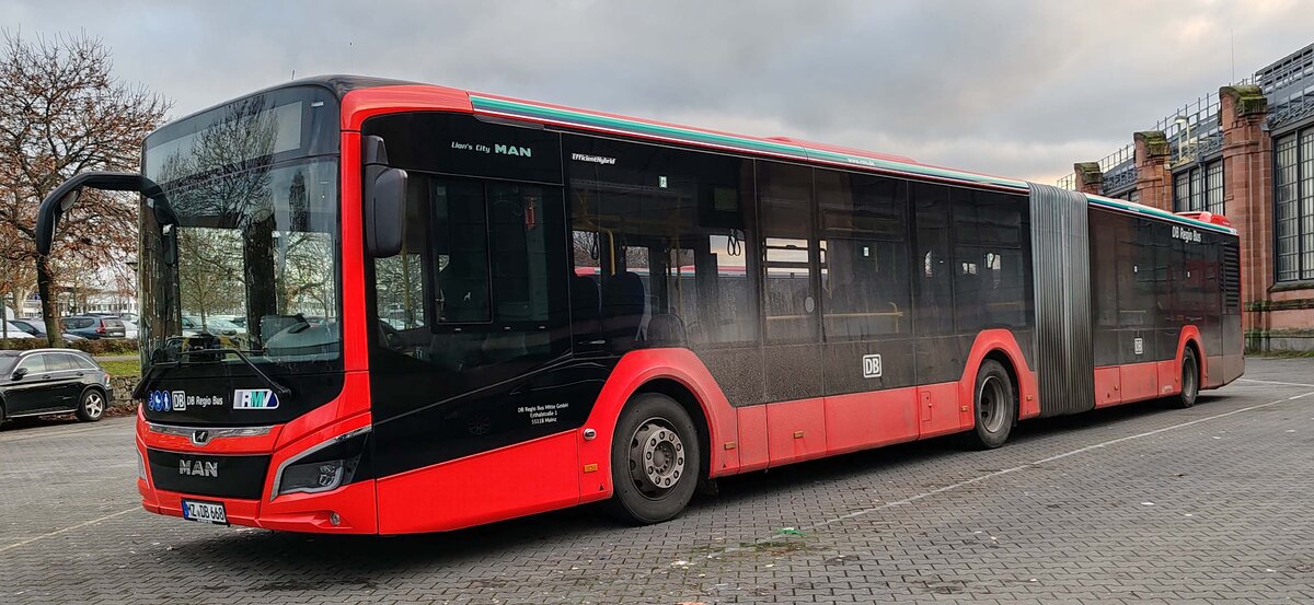 MAN Lion`s City der DB Regio Bus Mitte aus Mainz steht am HBF Wiesbaden im Dezember 2025