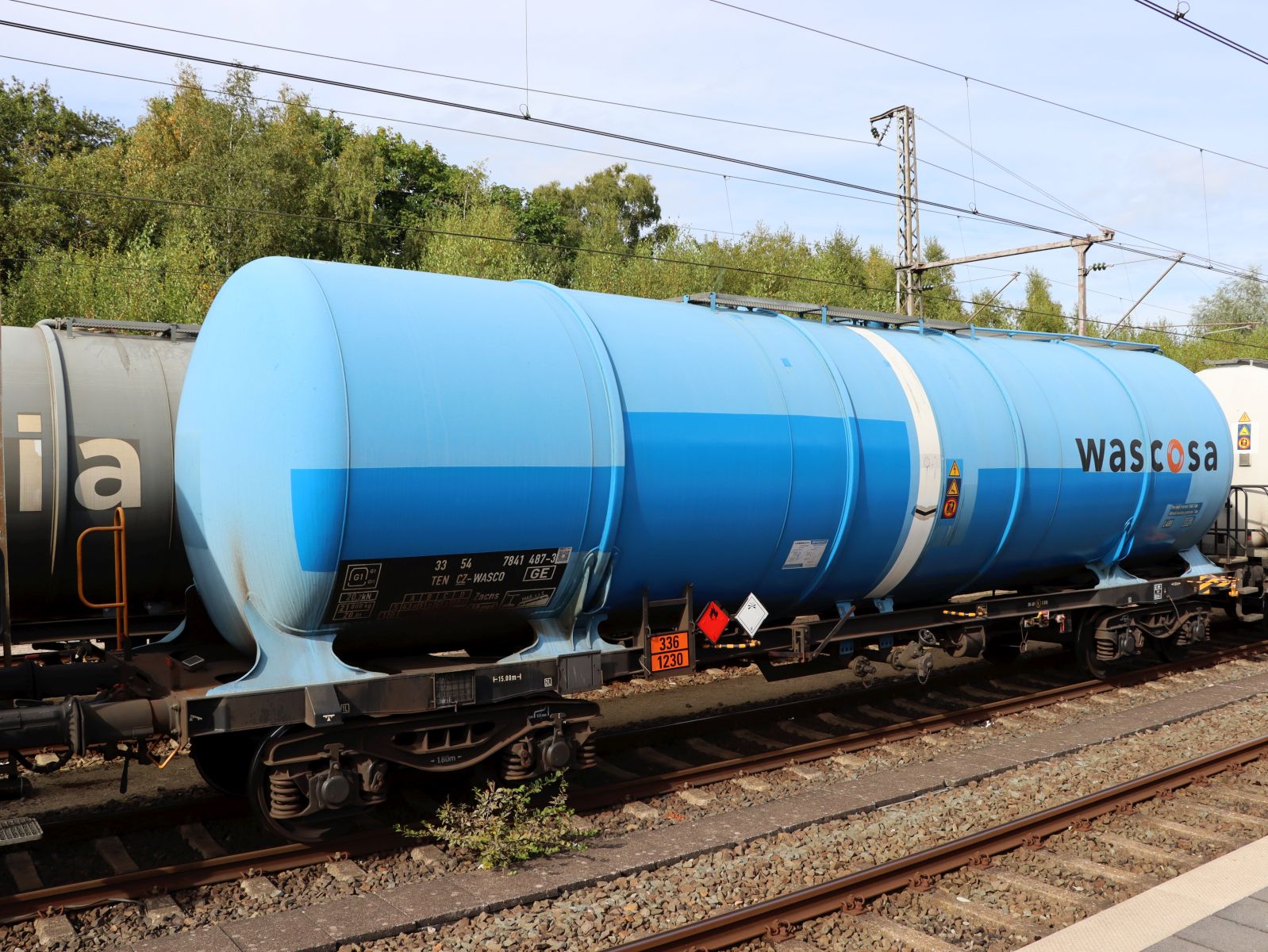 Zans ketelwagen uit Nederland van Wascosa met nummer 37 TEN 84 NL-WASCO 7844 138-9 station Bad Bentheim, Duitsland 27-08-2025.