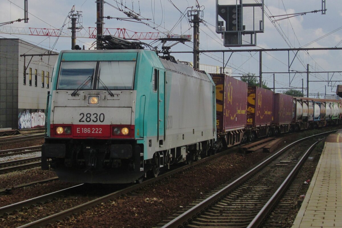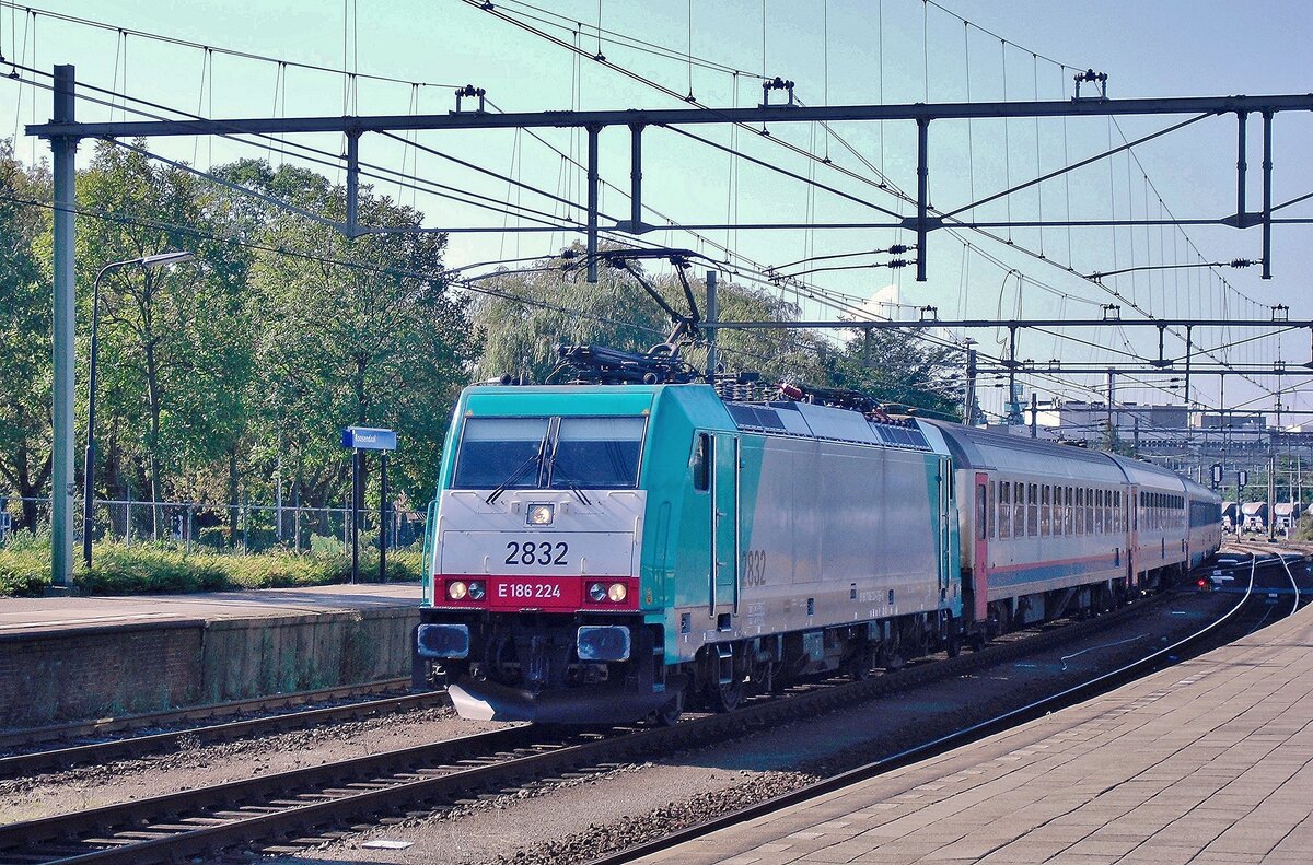 . Die von Alpha Trains gemietete SNCB HLE 2833 zieht am 04.09.2015 den IC Benelux Amsterdam Centraal - Bruxelles Midi durch Zevenbergen. Zu meiner großen Freude stehen in Zevenbergen die schönen alten Fahrleitungsmasten noch. (Jeanny)