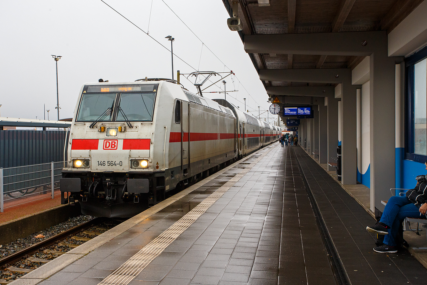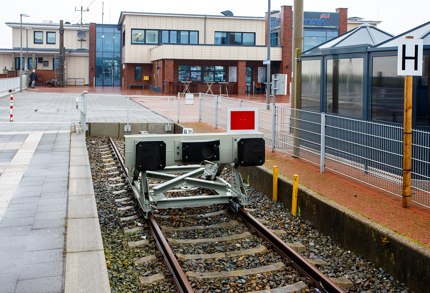 Der eingleisige Bahnhof Norddeich Mole in Ostfriesland, Endstation der Bahnstrecke Rheine–Norddeich Mole (KBS 395), hier am 30 April 2022.