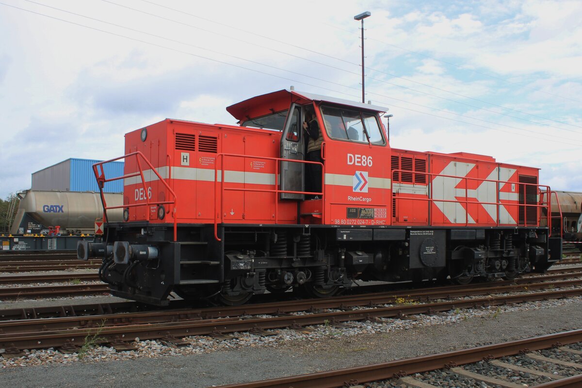 Die RheinCargo DE 84 (98 80 0272 022-1 D-RHC), ex HGK DE 84, eine MaK DE 1002, sowie ein ICE 2 verlassen am 14 Mai 2022 den Hauptbahnhof Köln.