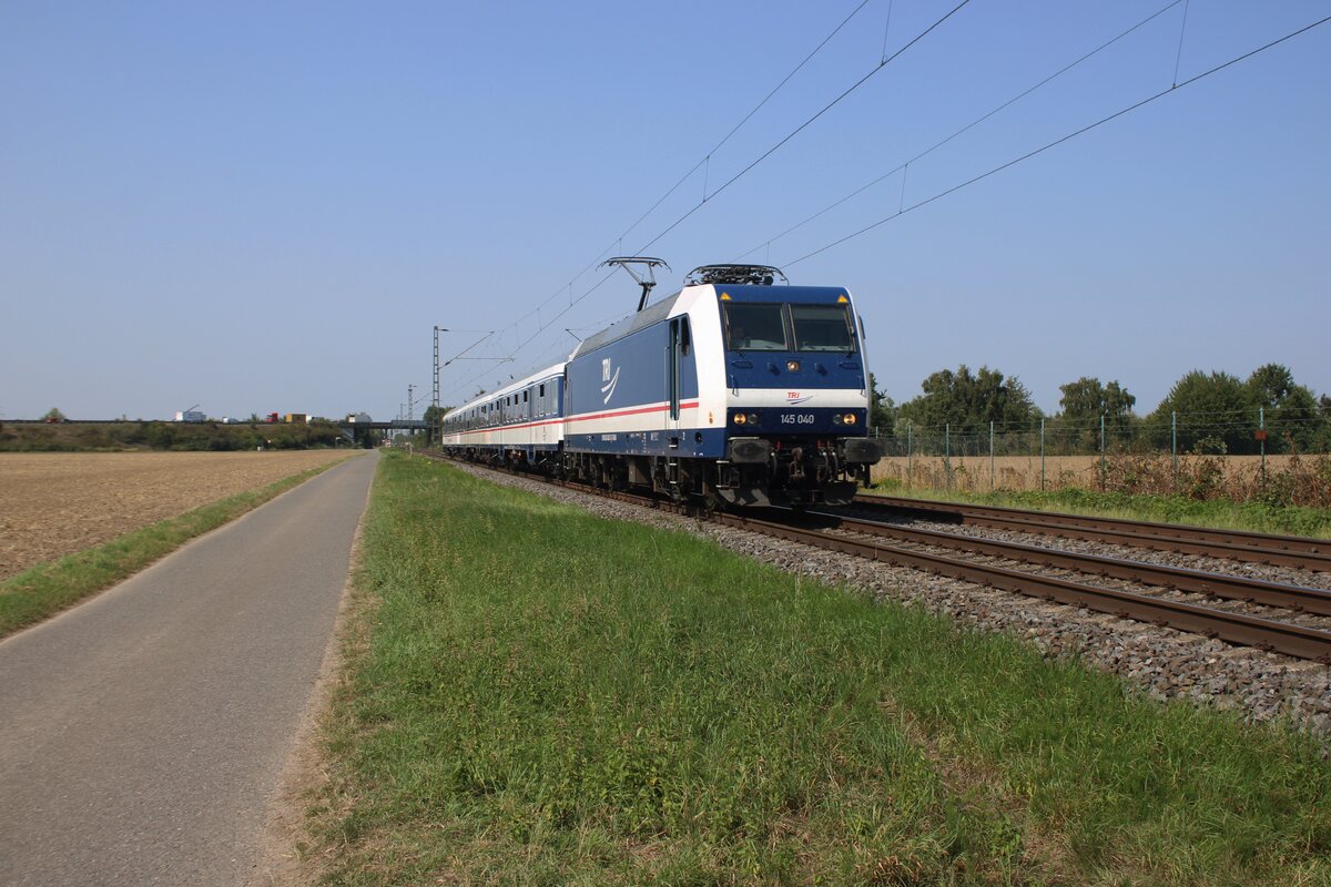 Am 12 Augustus 2025 war es ausreichend warm für der Lokführer von TRI 145 040 mit RB37 in Schlepp um mit offener Tur zu fahren bei Kaarst-Broicherseite.