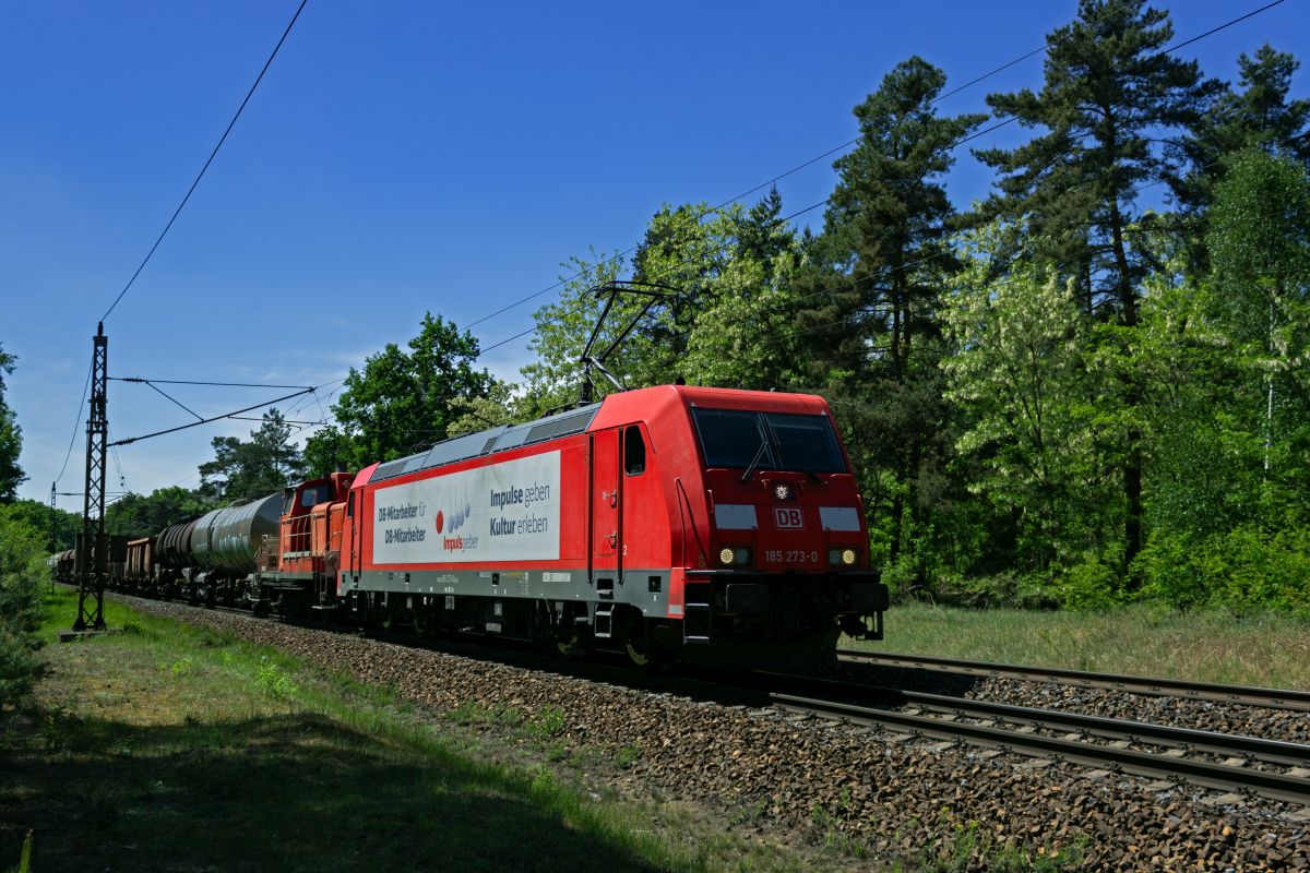 Detailansicht der für CO2-freien Gütertransport werbenden 185 389.