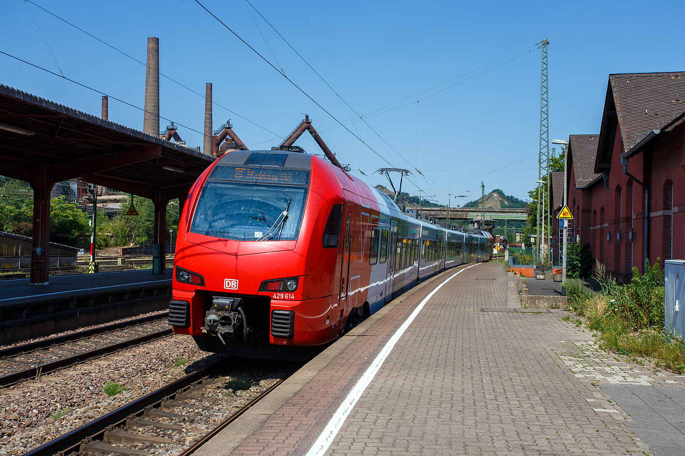 . SÜWEX mit Beiwerk - Etwas später gab es wieder in Stück blauer Himmel zu sehen, als der RE 1 (Mosel-Saar-Express) Koblenz Hbf - Saarbrücken Hbf in Form von einem fünfteiligen Stadler FLIRT 3 der DB Regio für das RE-Netz Südwest zwischen dem Kohlekraftwerk Ensdorf und Bous an den Fotografen vorbei fuhr. (Hans)