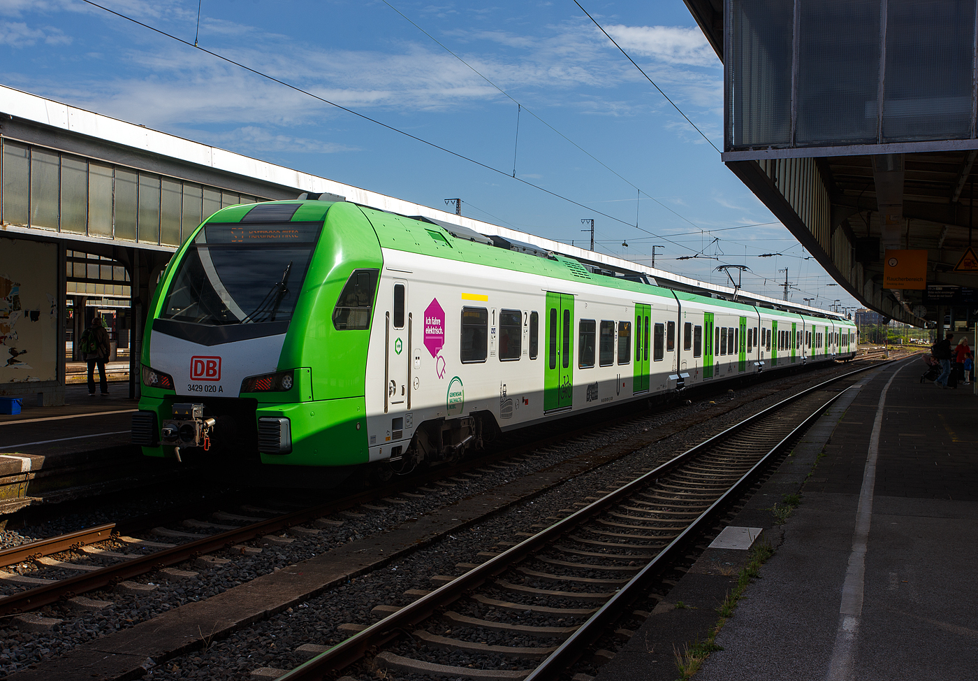 Der für die DB Regio AG – NRW fahrende und für die S-Bahn Rhein-Ruhr eingesetzte fünfteilige Stadler FLIRT 3 XL 3429 020 (94 80 3429 0020-5 D-STAP etc.) der ZV VRR Eigenbetrieb Fahrzeuge und Infrastruktur, hat am 24 Juni 2025 als S3 von Hattingen den Zielbahnhof Oberhausen Hauptbahnhof erreicht.