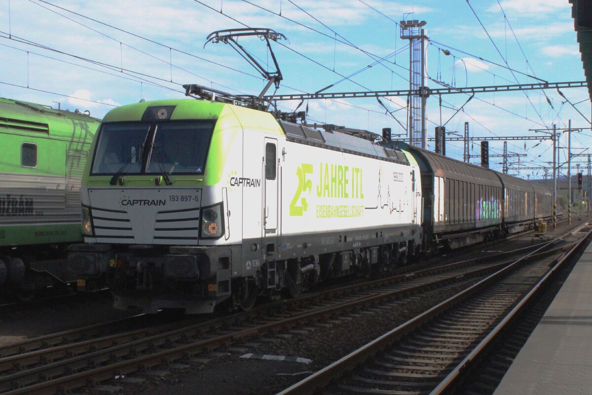 Die Captrain 185 549-3 (91 80 6185 549-3 D-CCW) fährt am 24.08.2021 mit einem Containerzug durch Niederschelden über die Siegstecke (KBS 460) in Richtung Köln. Aktuell trägt die Lok Werbung für die Mannesmann Röhrenwerke – Rohre aus Sachsen.