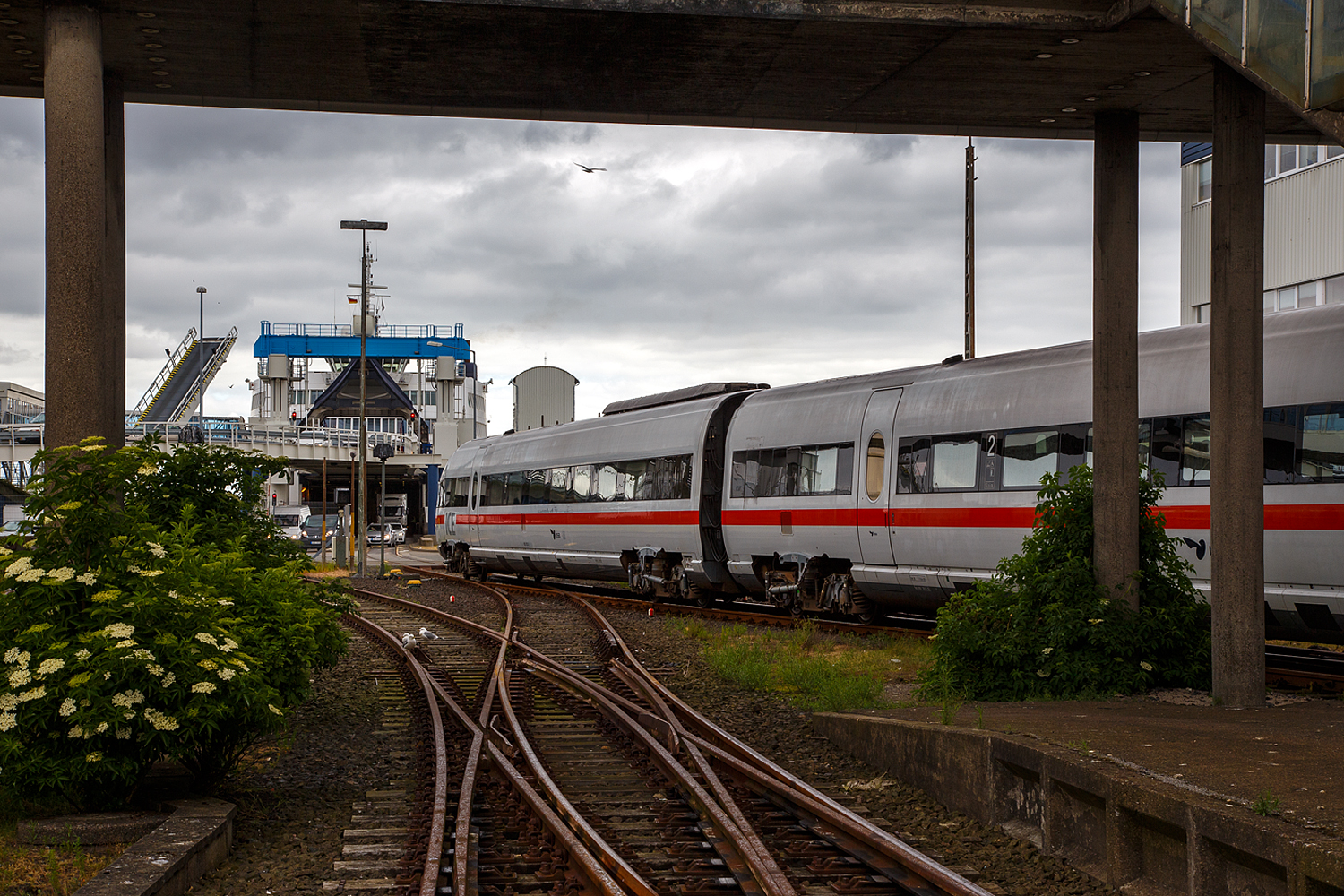 Der ICE TD bzw. VT 605, Tz 5503 hat am 15 Juni 2015, als ICE 33 (Hamburg Hbf - Koebenhavn H), den Fährbahnhof Puttgarten erreicht.