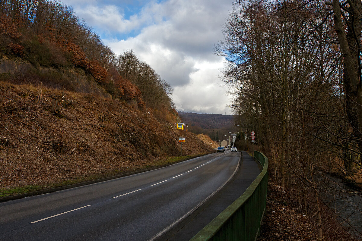 Ein Alstom Coradia LINT 27 der HLB (Hessische Landesbahn) fährt als RB 95 "Sieg-Dill-Bahn" Au/Sieg - Siegen - Dillenburg am 18.04.2015 über den Rudersdorfer Viadukt in Richtung Dillenburg.