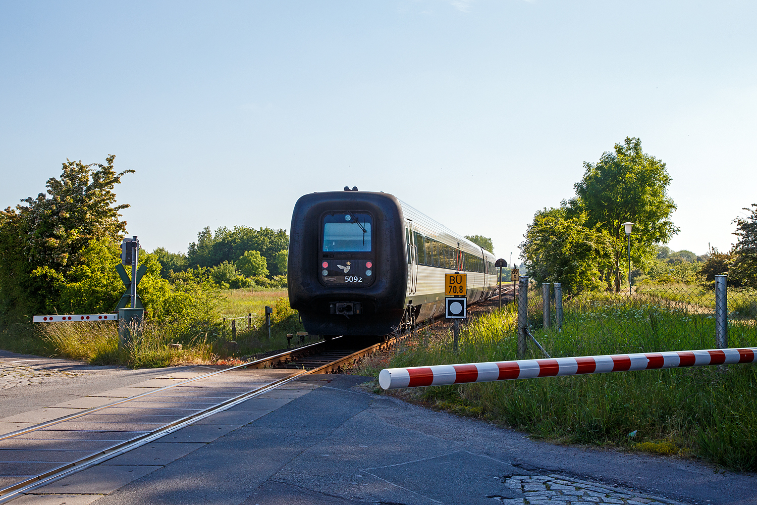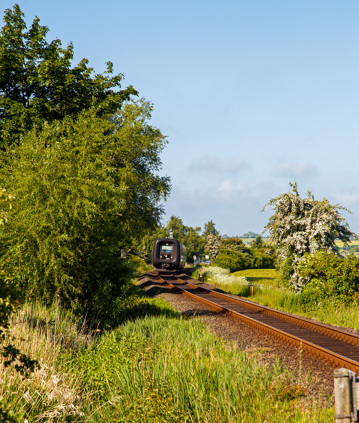 Ich stehe am Bahnsteig der Lößnitzgrundbahn, sächsische Schmalspurbahn Radebeul Ost–Radeburg der SDG - Sächsische Dampfeisenbahngesellschaft mbH, links der Lokschuppen.