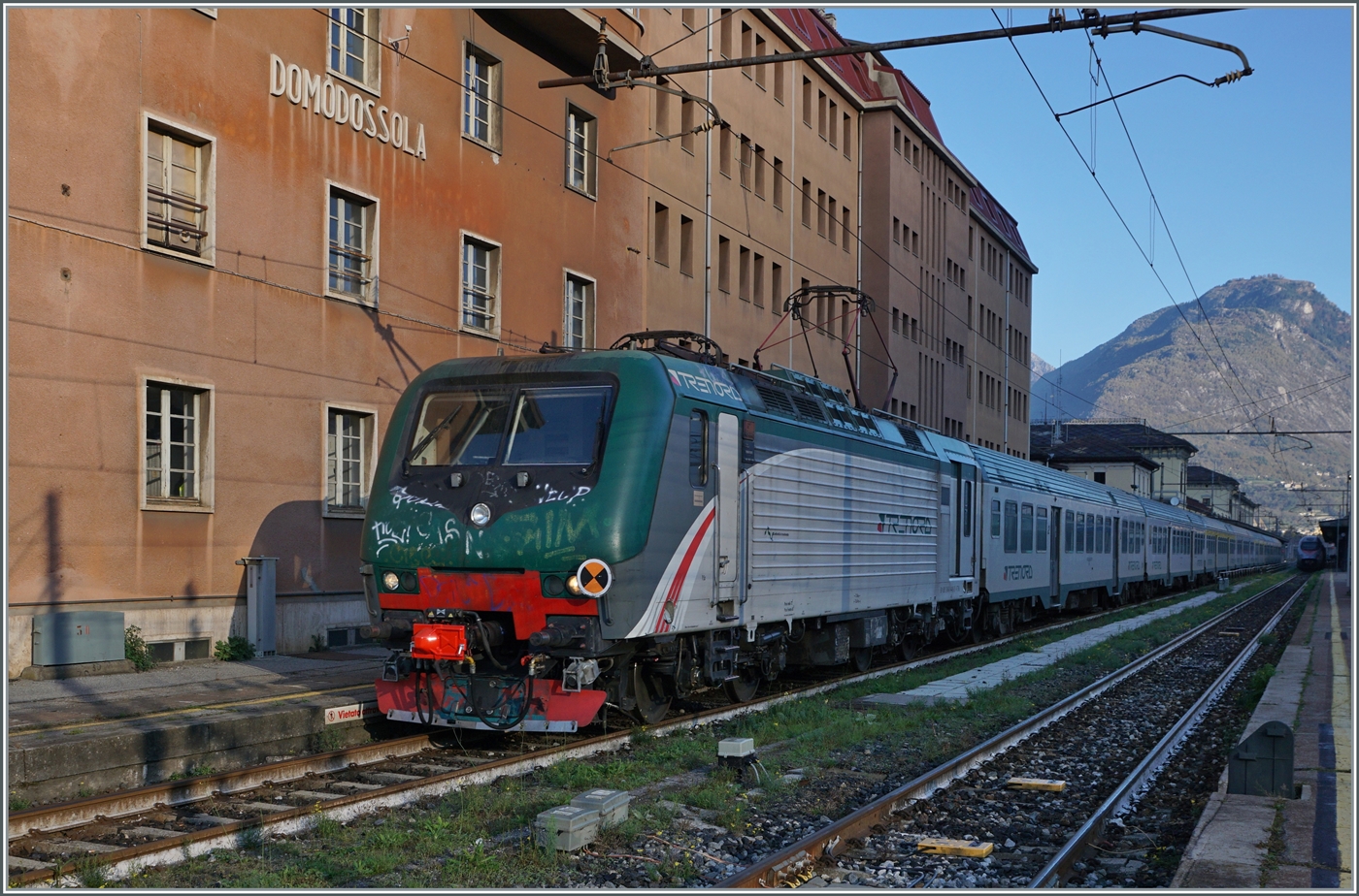 Die X4 E 711 steht mit einem TEE Wagen abgestellt in Domodossola und wartet auf neuen Aufgaben.