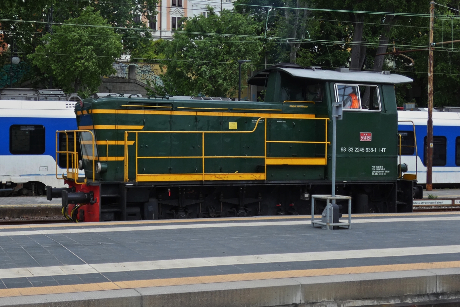 FS Diesellok 245 638-1 wartet im Bahnhof von Triest, auf das Signal zum Ausfahren aus dem Bahnhof. 05.05.2025