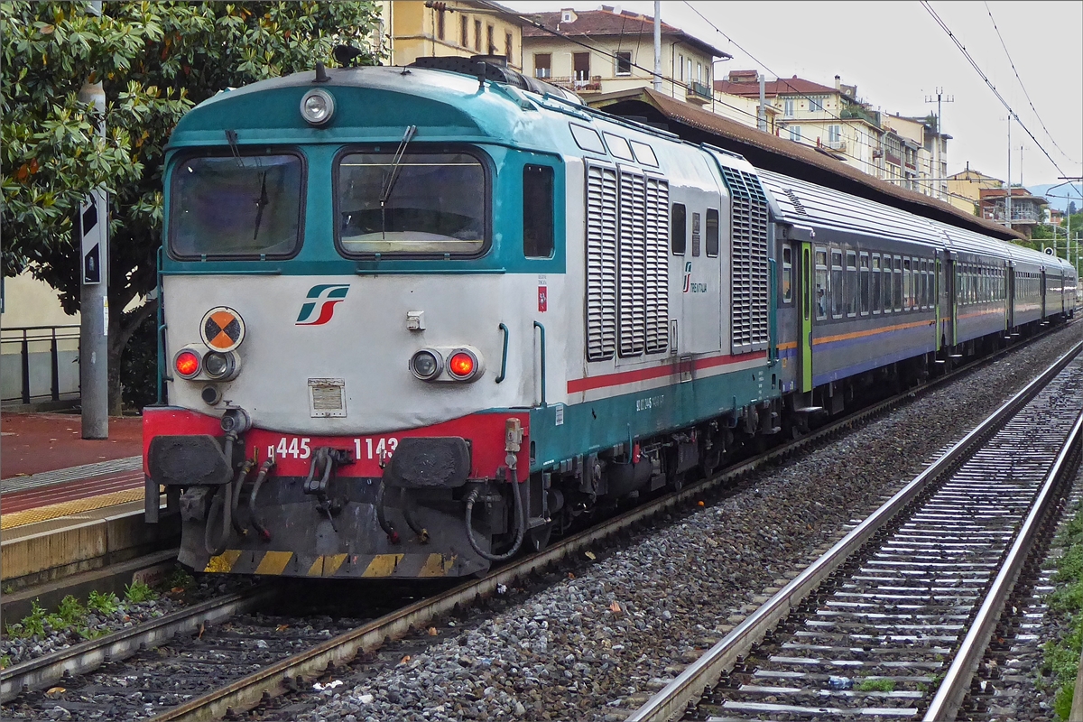 Diesellok D 445 1145 (92 83 2445 143-6 I-TI) schiebt ihren Zug durch den Bahnhof von Firenze Campo di Marte in Richtung Firenze Santa Maria Novella. 18.05.2019 (Hans)
