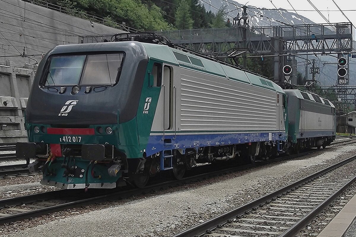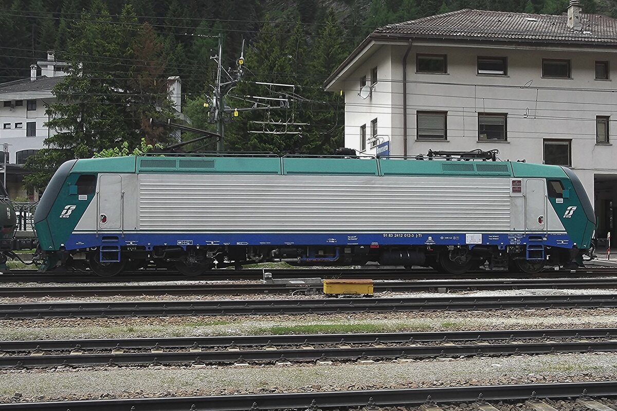 Lok 412 419-8 steht im Vorfeld des Güterbahnhofs von Verona. 05.2025 (Handyfoto Janne)