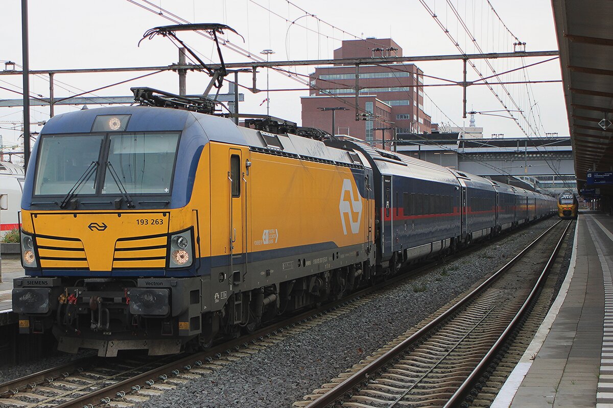 AQm 22 November 2025 steht NS 193 263 mit der NightJet-II DANI in Amersfoort.