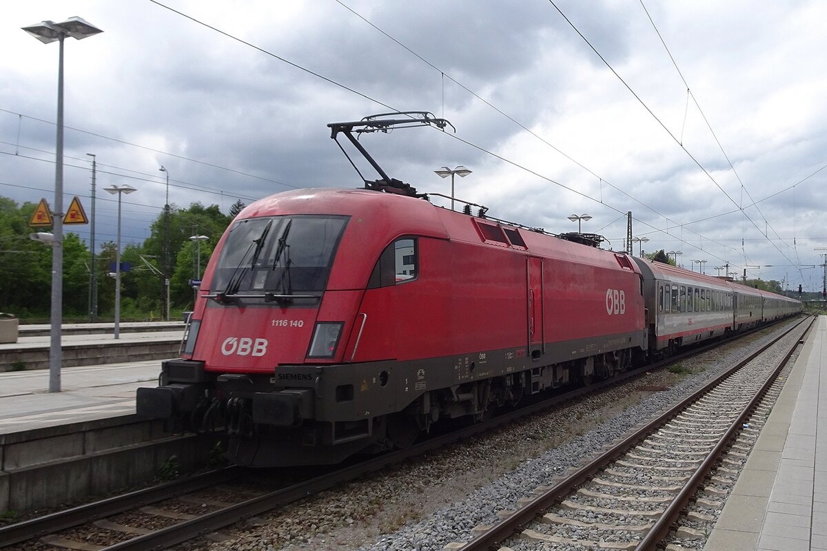 Die Taurus II - ÖBB 1116 149 (91 81 1116 149-6 A-ÖBB) der ÖBB-Produktion GmbH erreicht, mit über 30 Minuten Verspätung, mit dem EC 218 „Chiemgau“ (von Graz Hbf über Leoben, Selzthal, Bischofshofen, Salzburg Hbf, München Hbf, Stuttgart Hbf und Darmstadt Hbf nach Frankfurt am Main Hbf), am 15 Januar 2025 den Hauptbahnhof Salzburg. In Salzburg hat der Zug zudem wegen dem Personalwechsel zwischen ÖBB und DB einen planmäßigen Aufenthalt von 15 Minuten.