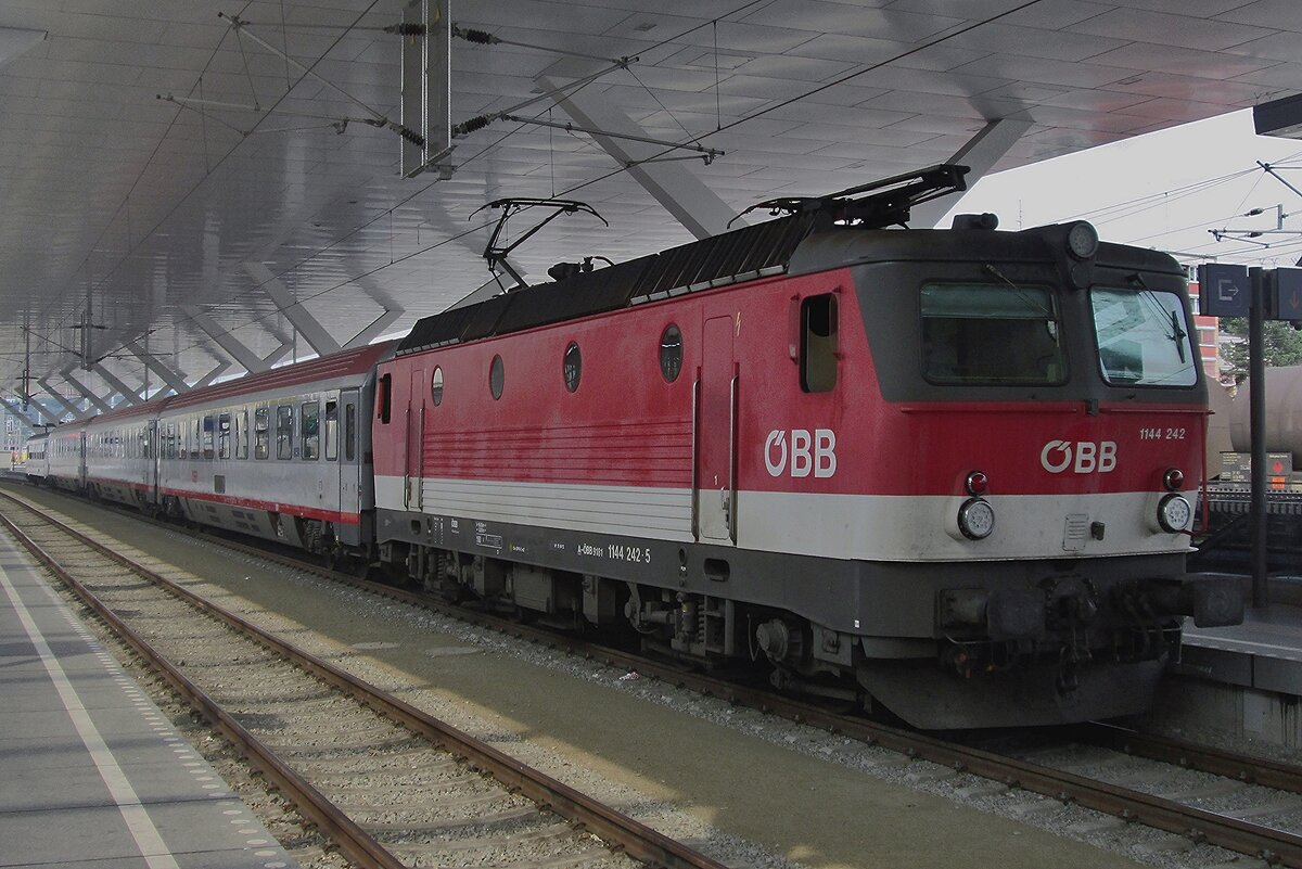 Am 3 Juni 2015 treft 1144 242 mit ein ÖBBIC aus Linz in Salzburg Hbf ein.
