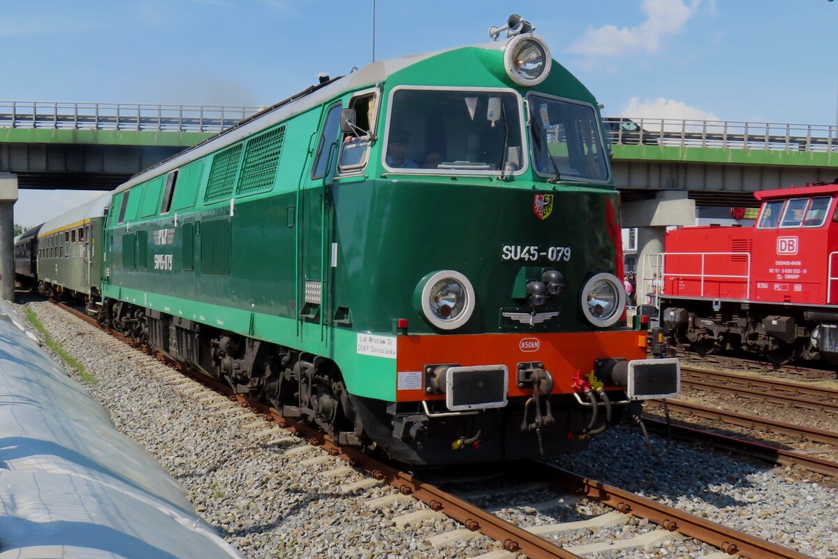 Am Abend von 3 Mai 2024 übt SU45-079 in Poznan Glowny für ein Sonderzugeinsatz nach Wolsztyn am nächsten Tag. Dieser Lok ist die einzige betriebsfähig erhaltener SU45 in Polen, dank der Klub von Wroclawer Eisenbahnfreunde.
