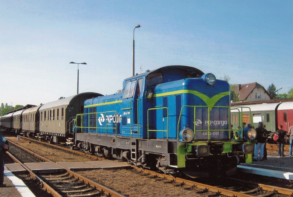 SM42-1097 steht während der Lokparade mit ex-KPEV-Donnerbuchsen ins Bahnhof von Wolsztyn am 30 April 2011.
