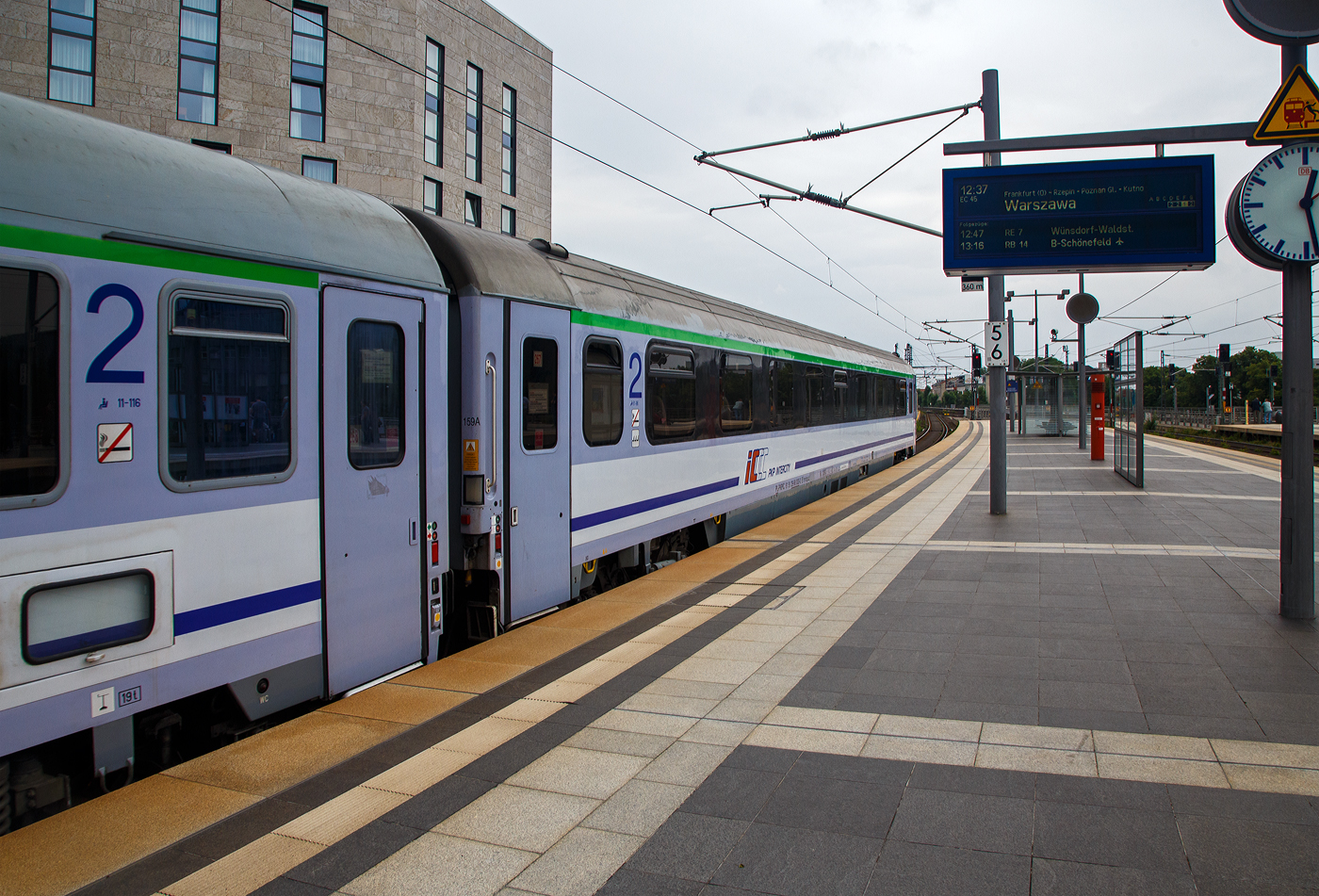 Der 2. Klasse klimatisierte Abteilwagen (Reisezugwagen) PL-PLKIC 61 51 21-90 032-3 der Gattung B11mnouz (Typ Z1B / Bdmnu) der PKP Intercity, eingereiht als Wagen 268 in den „Berlin-Warszawa-Express“ EC 45 (DB) / EIC 71004 (PKPIC), am 24. Juni 2017 im Hbf Berlin.