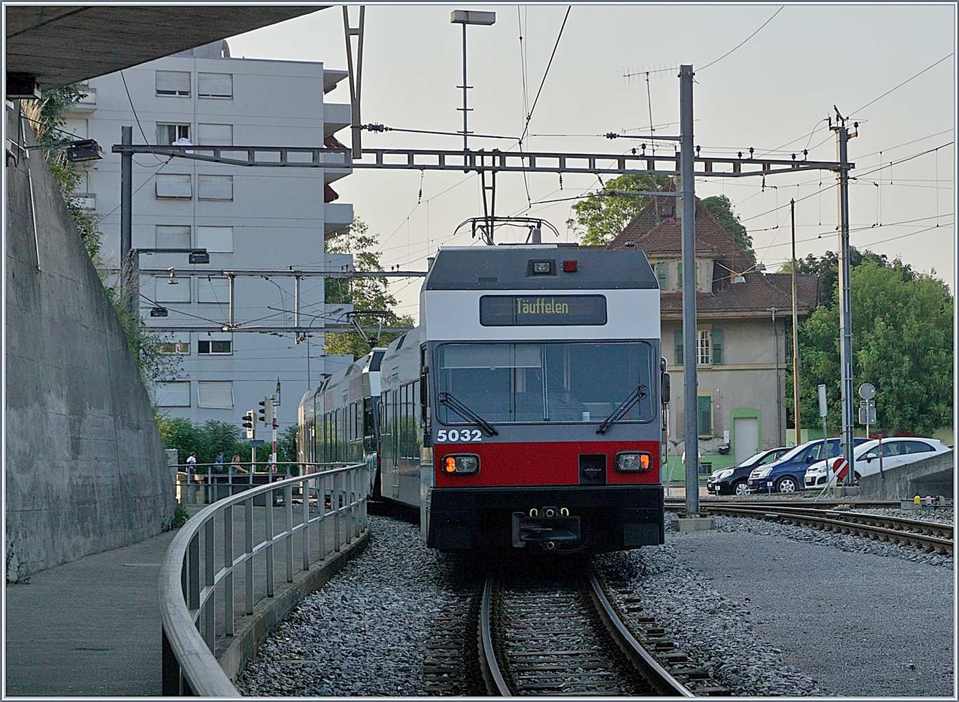 Zwei ASM /ex BTI GTW Be 2/6 verlassen den Bahnhof von Biel/Bienne. Zumindest der hinter GTW Be 2/6 5032 zeigt sich noch in den Urspurungsfaben.