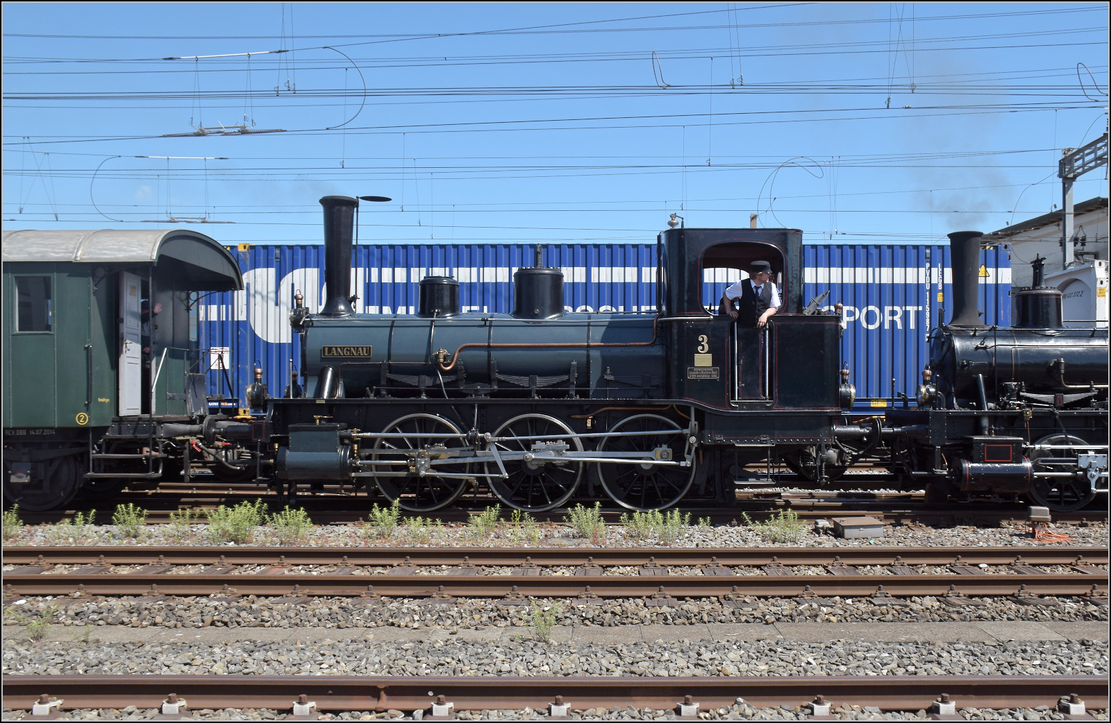 150 Jahre Emmentalbahn. Während nebenan 193 526 'Maas' und 193 475 'Domodossola' der SBB Cargo international einen Güterzug Richtung Basel befördern, kündigte sich mit Pfeifen wahrlich Historisches von der in Burgdorf abzweigenden Strecke an. Mai 2025.