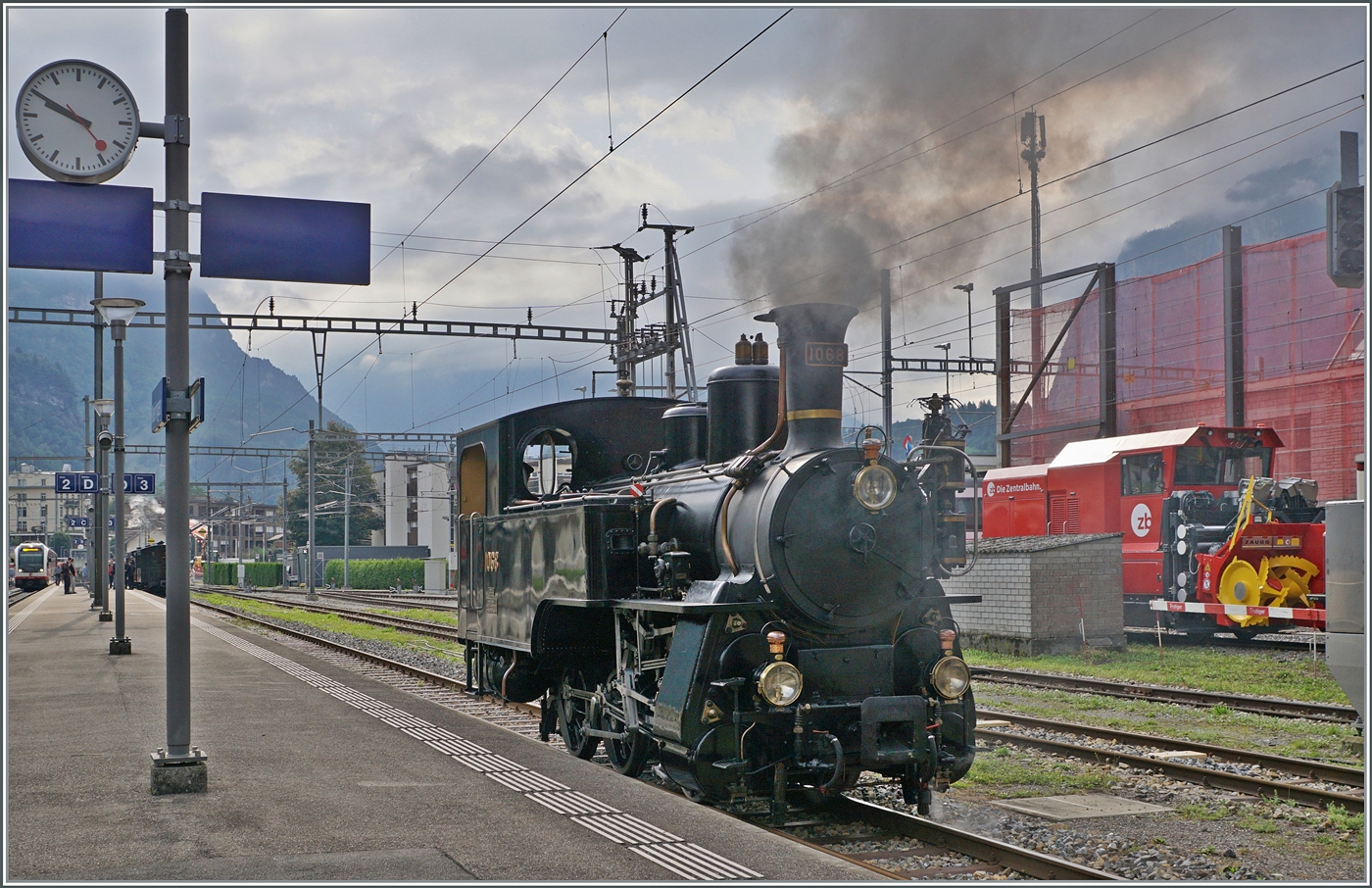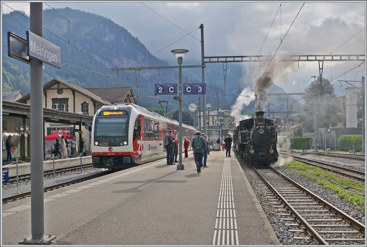 Der Muni - 2180 PS - die Brünigbahn SBB HGe 4/4 1992 "Giswil" in Meiringen.