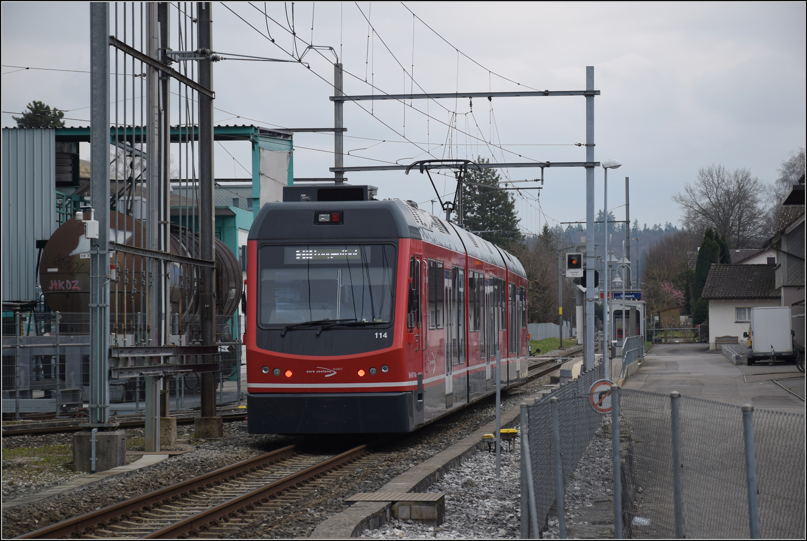 Der MOB Be 4/4 1007 (ex "Bippperlisi") wartet in Zweisimmen auf den nächsten Einsatz.