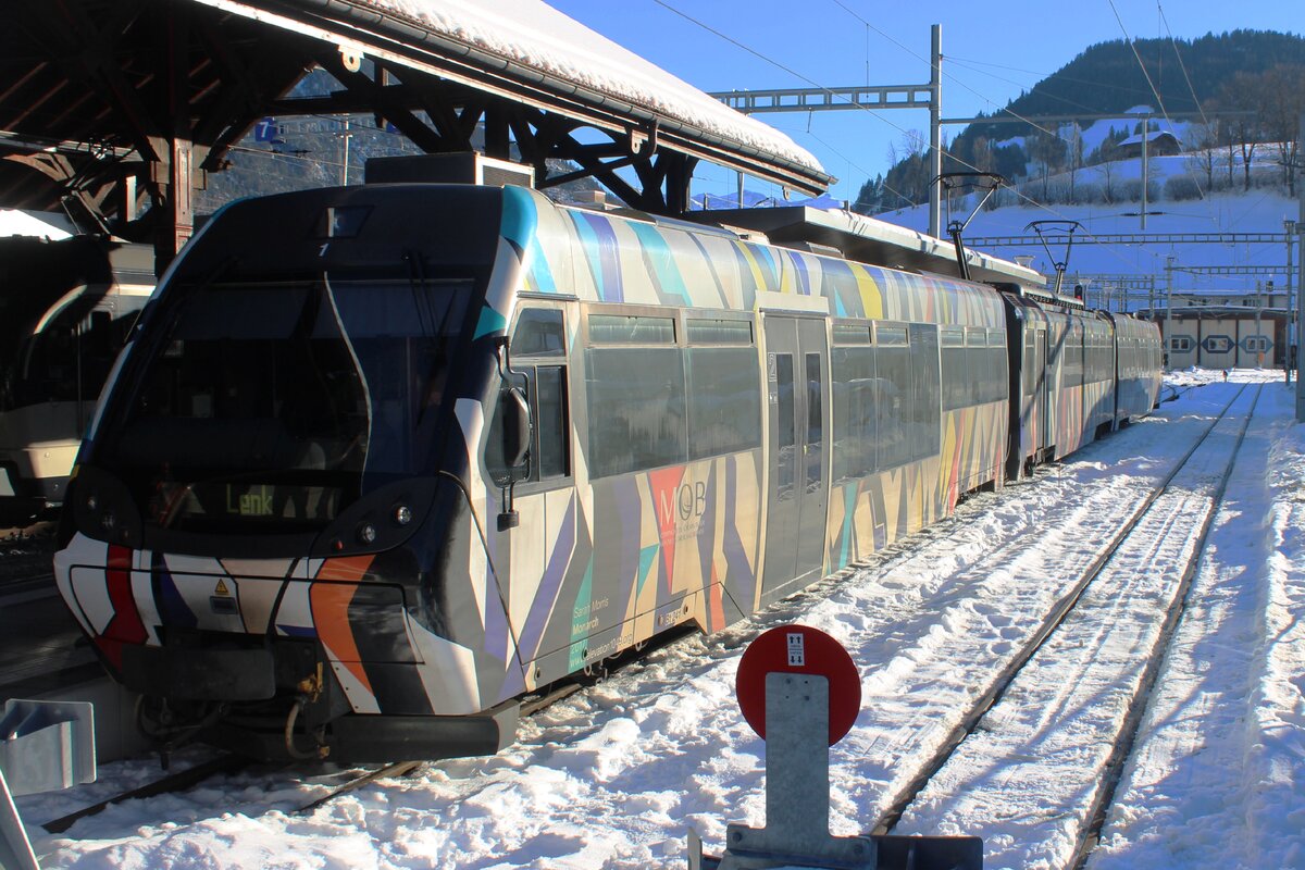 Der MOB Be 4/4 1007 "Bipperlisi" rangiert in Zweisimmen.