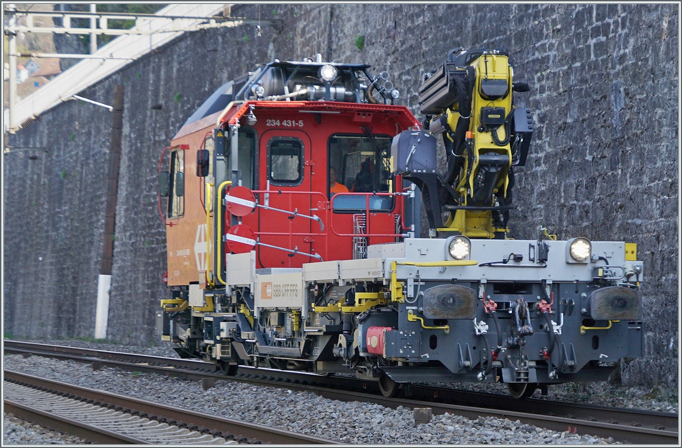 Der SBB Tm 234 434-2 "Dart" (Windhoff) erreicht aus Richtung Villeneuve kommend Montreux.