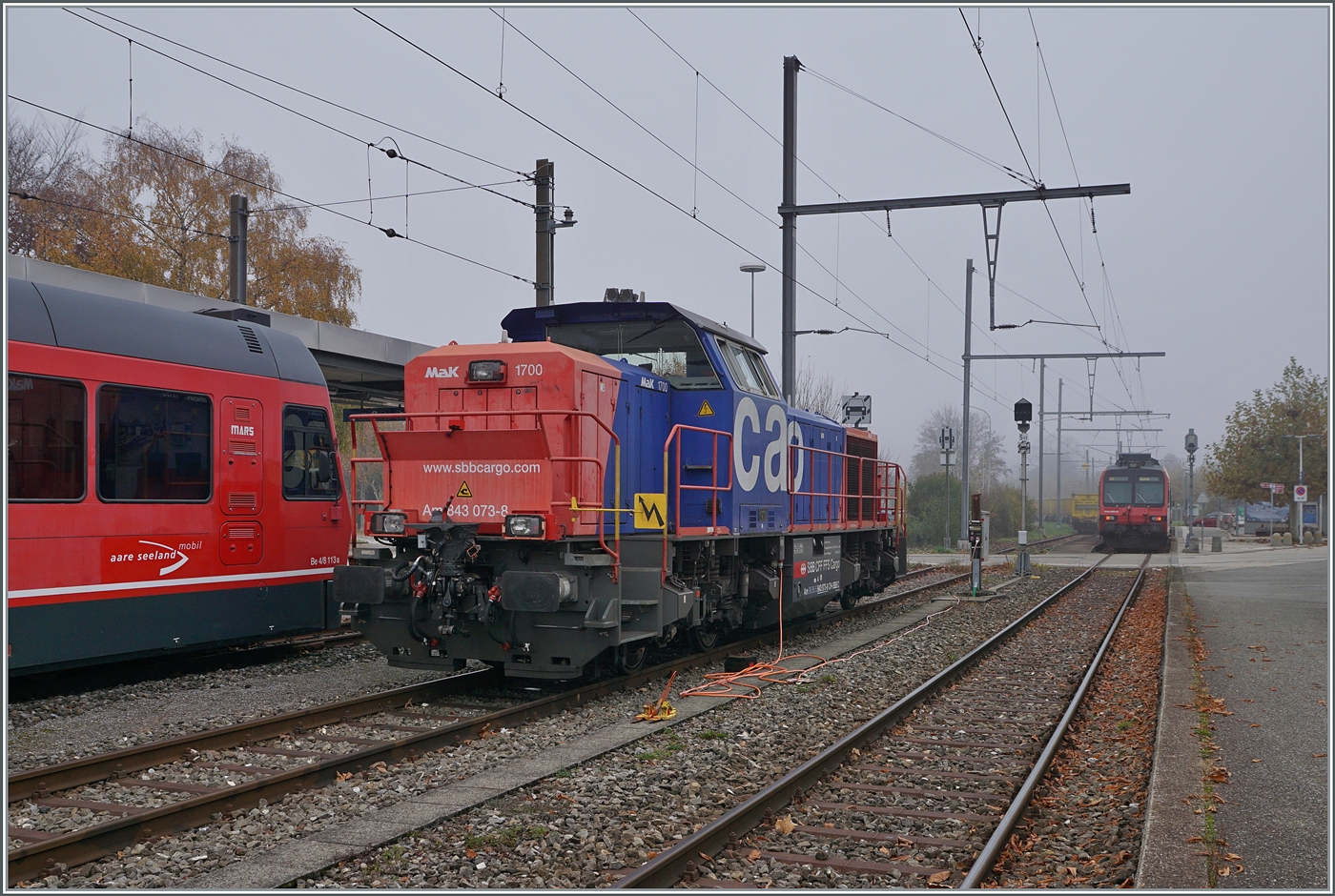 Die SBB Cargo Am 843 062-1 eine MaK 1700 BB fährt am 01.11.2019 mit einem Güterzug durch den Bahnhof Chur Richtung Landquart.