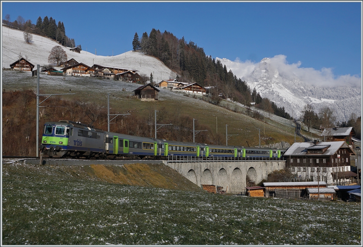 Am 2.Jänner 2020 steht BLS 420 501 in Spiez mit ein regionalzug nach Interlaken Ost. Dieser Lok war einst SBB 11110 und ist heute Eigentum der Schweizerischer Verein Verein Extrazug.CH, die die Lok wieder ins Originalzustand zurücksetzen sollen -ins SBB grün und mit runde Lampe.