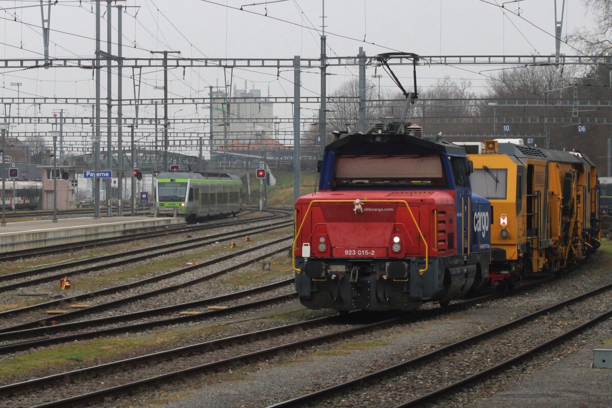 Neben SBB Re 6/6 um Eem 923 zeigt sich auch ein Dispo-Zug im Bahnhof von Lausanne Triage.