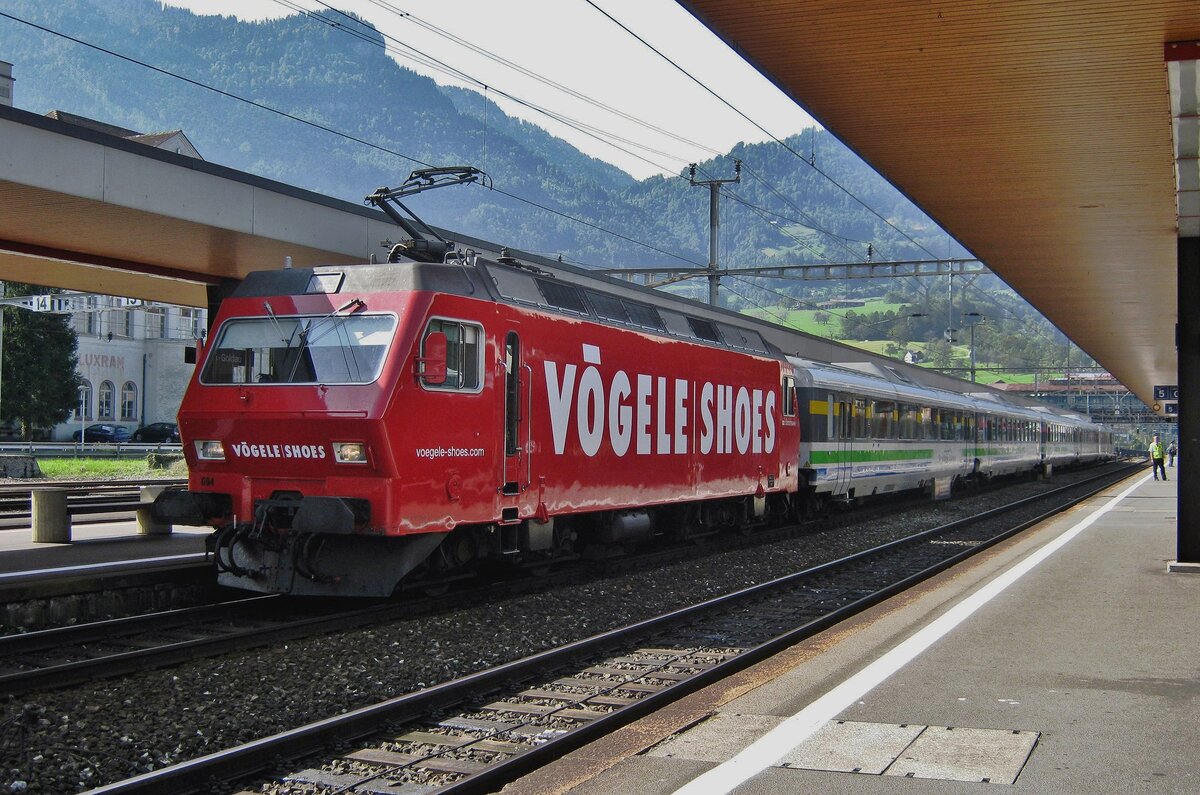 Leider mit Gegenlicht: am 23 September 2010 steht SOB 456 094 mit der VorAlpenExpress nach Romanshorn in Arth-Goldau.