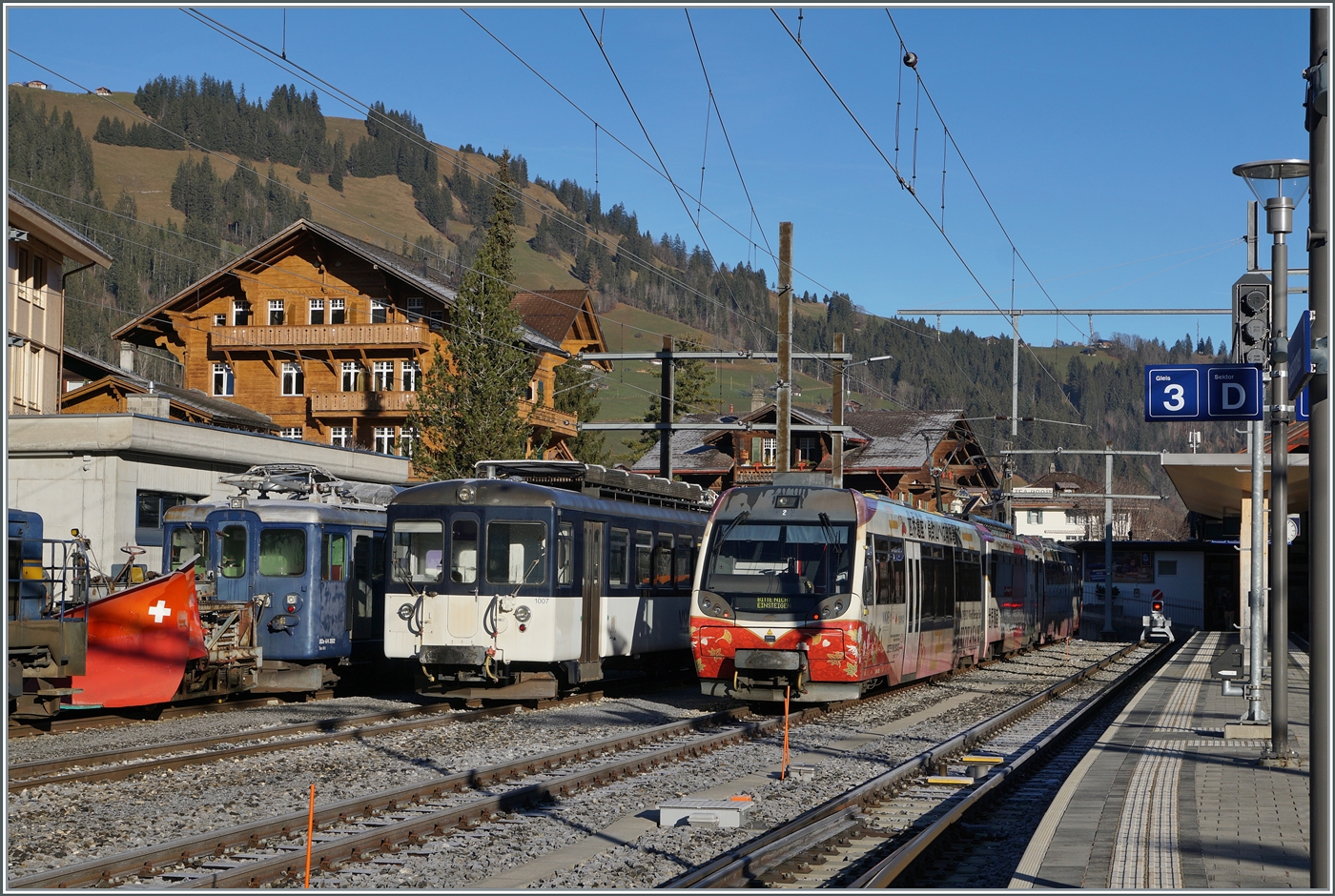 Die Trauben links im Bild sind zwar nicht scharf, aber herrlich süss; im Bild zudem der ASD BDe 4/4 404, der mit seinem Bt 432 als ASD Regionalzug 448 kurz nach der Station Aigle Château (vormals Aigle Dépôt ASD) die Steigung Richtung Verchiez in Angriff genommen hat. 18. Nov. 2018