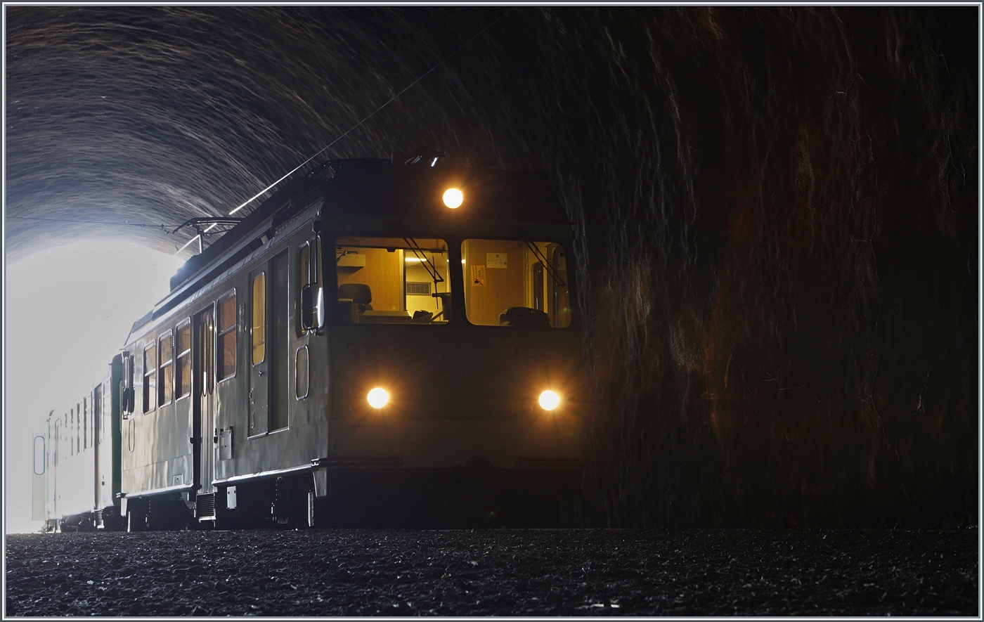 Der TPC BDeh 4/4 301 mit seinen Bt 352 auf der Fahrt nach Leysin sucht sich den engen Weg durch die Altstadt von Aigle.