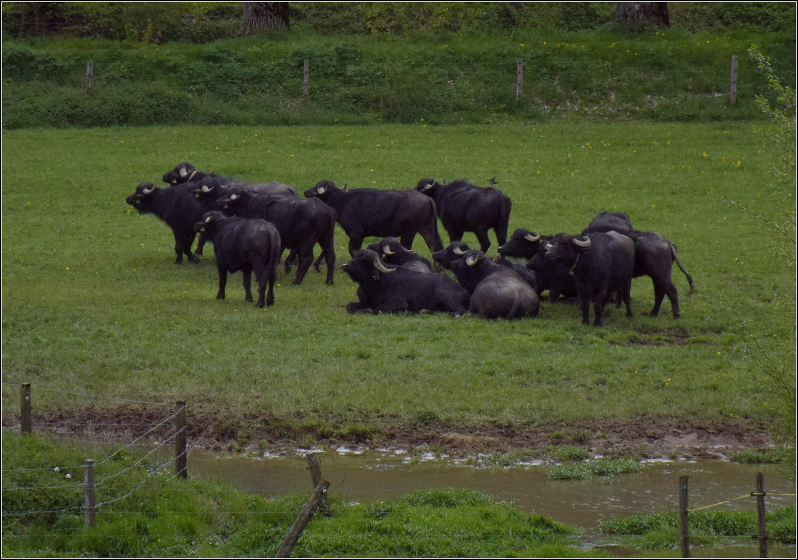 Echte Dampflok-Bewunderer kleiden sich offenbar in Schwarz, selbst wenn die Dampflok braun ist. Die Wasserbüffel gegenüber La Presta sind richtige Fans, obwohl der Zug einen halben Kilometer entfernt vorbeifährt, manchmal wird auch zügig an eine bessere Aussichtsposition gewechselt. Mai 2024. Olli