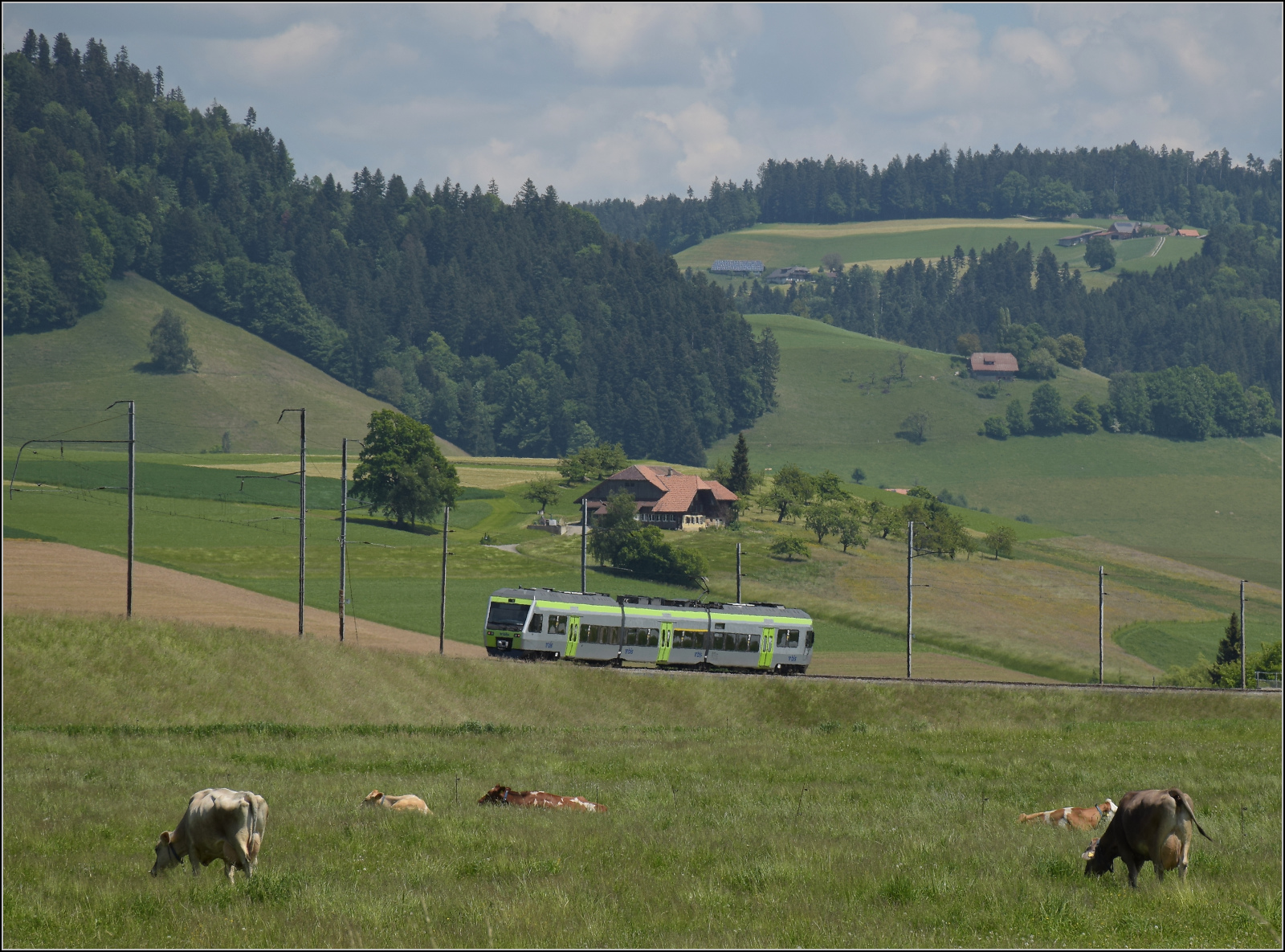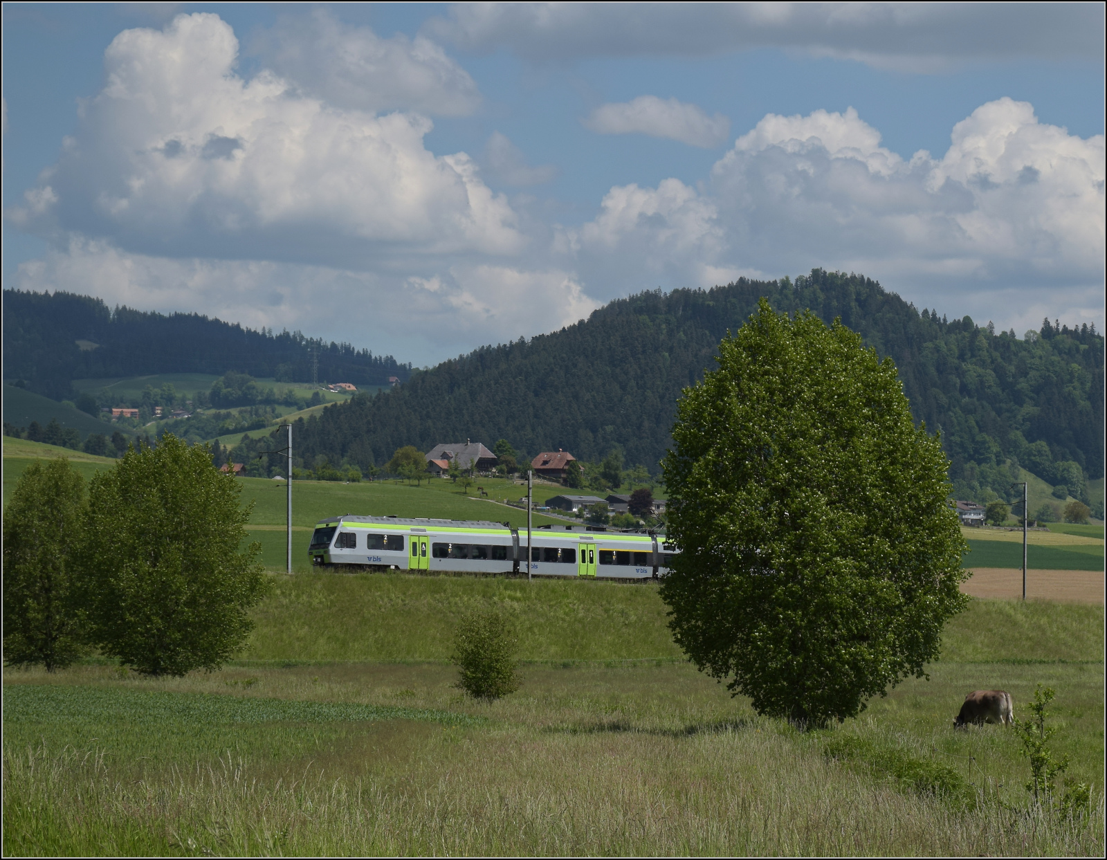 Der BLS RABe 525 039 "NINA" bei Enge im Simmental auf dem Weg nach Bern.