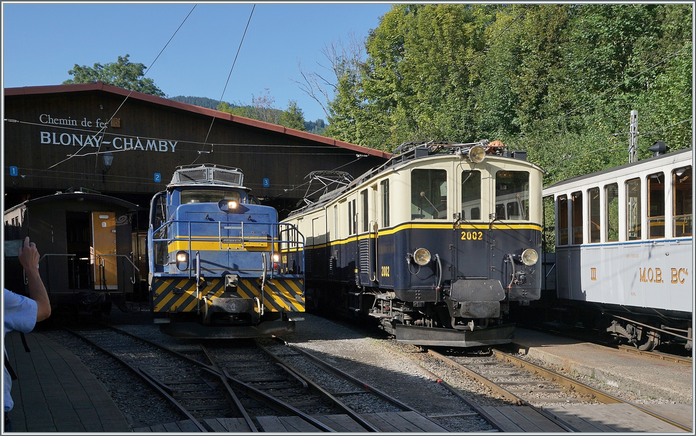 Die MOB DZe 6/6 2002 der Blonay-Chamby Bahn schiebt bei Chaulin ihren Zug in den Museumsbahnhof.