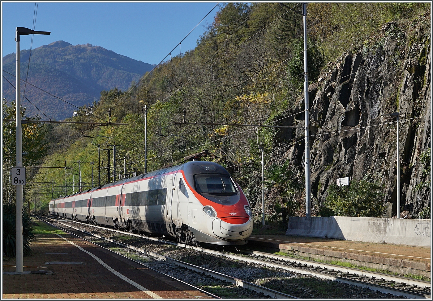 Ja, im Hintergrund sind noch zwei Trennord ETR 425, aber nicht abgestellt, sondern auch beim Zwischenhalt. Dieser musste hier warten und den ETR 610 durchlassen.