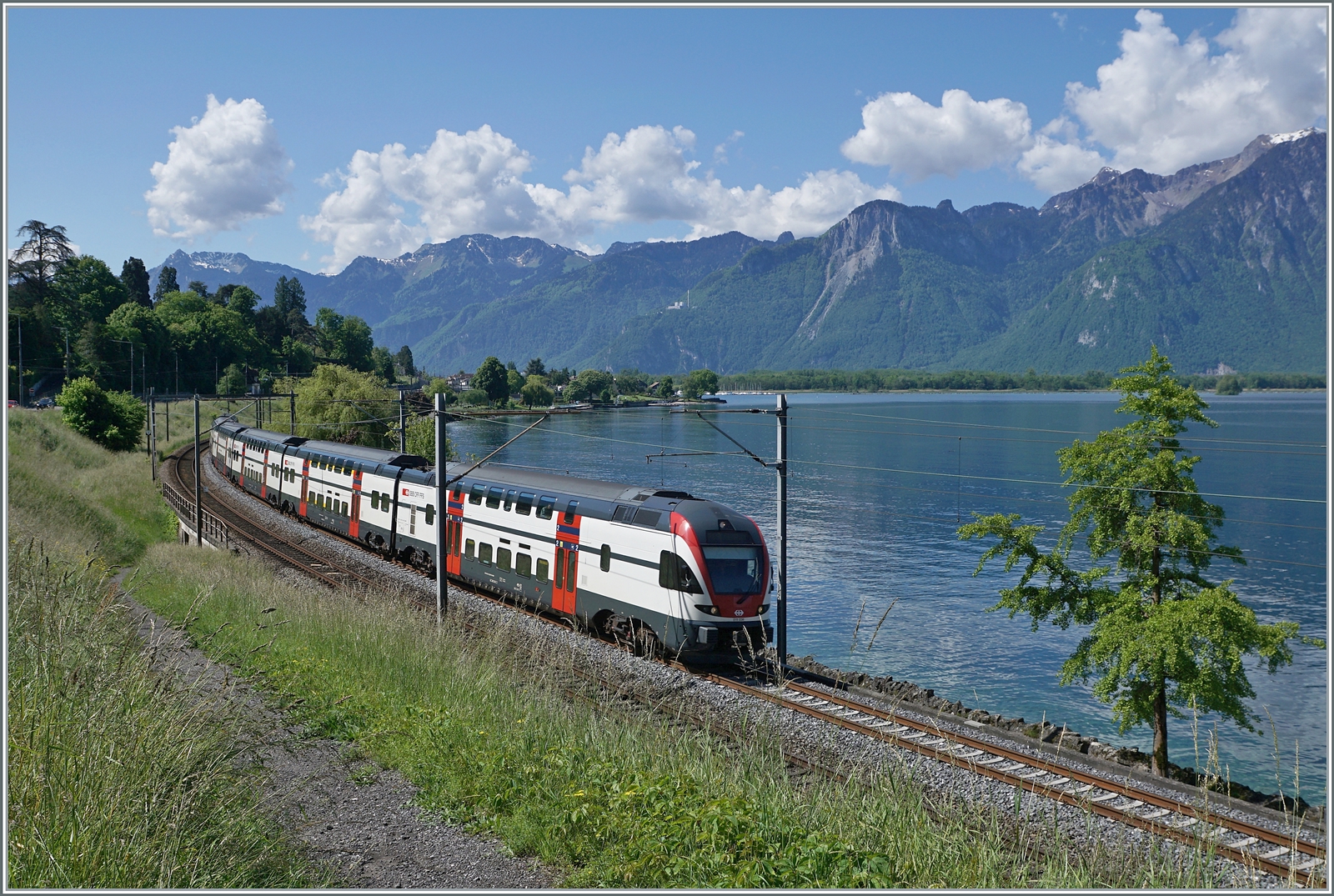 Ein SBB RABe 511 ist als RE 33 kurz nach Villeneuve auf dem Weg nach Annemasse.