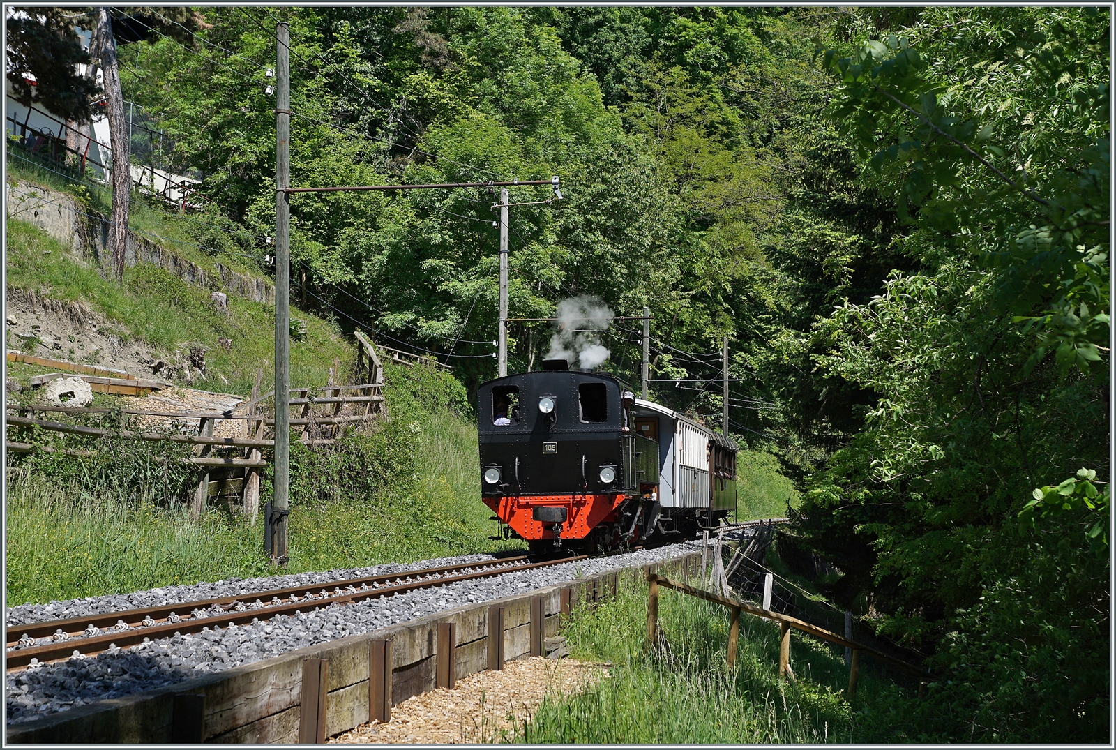 Der Rh.B. AB 121 mit dem "Cabinet" zwischen der I. und II. Klasse - und das Rohr erklärt anschlaulich die Funktionsweise des "Cabinet".
